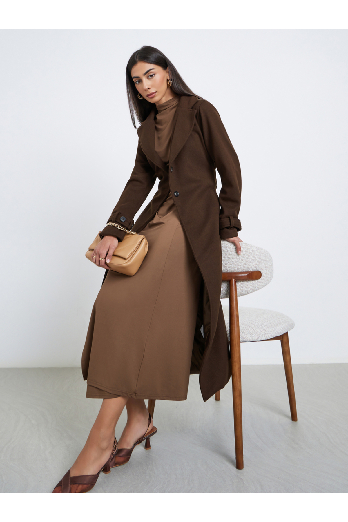 ميزات معطف بحزام يشبه الصوف مع لوحة خلفية متباينة من Styli