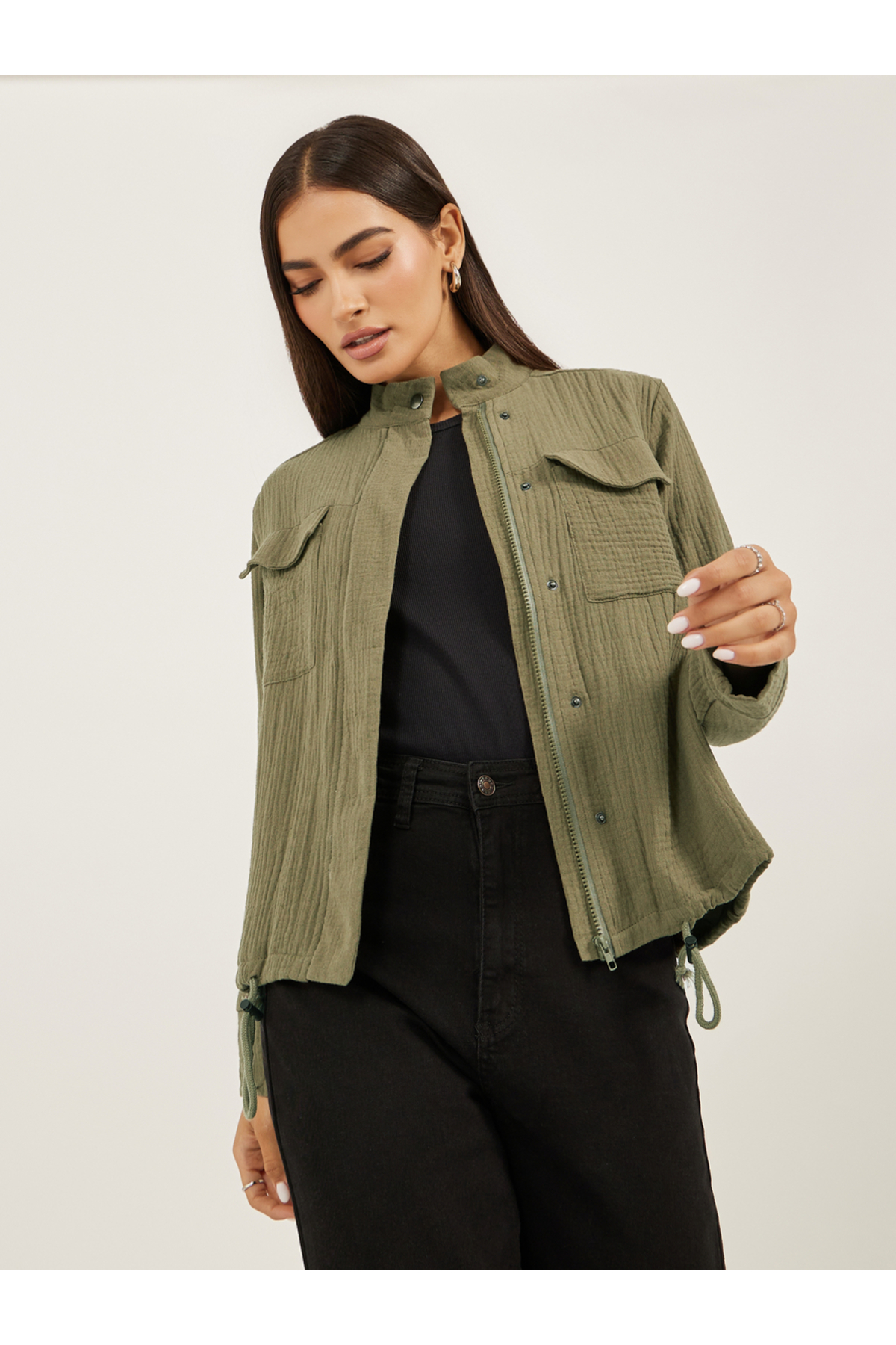 Styli جاكيت مجعد بقصّة عادية وطول عادي مع جيوب