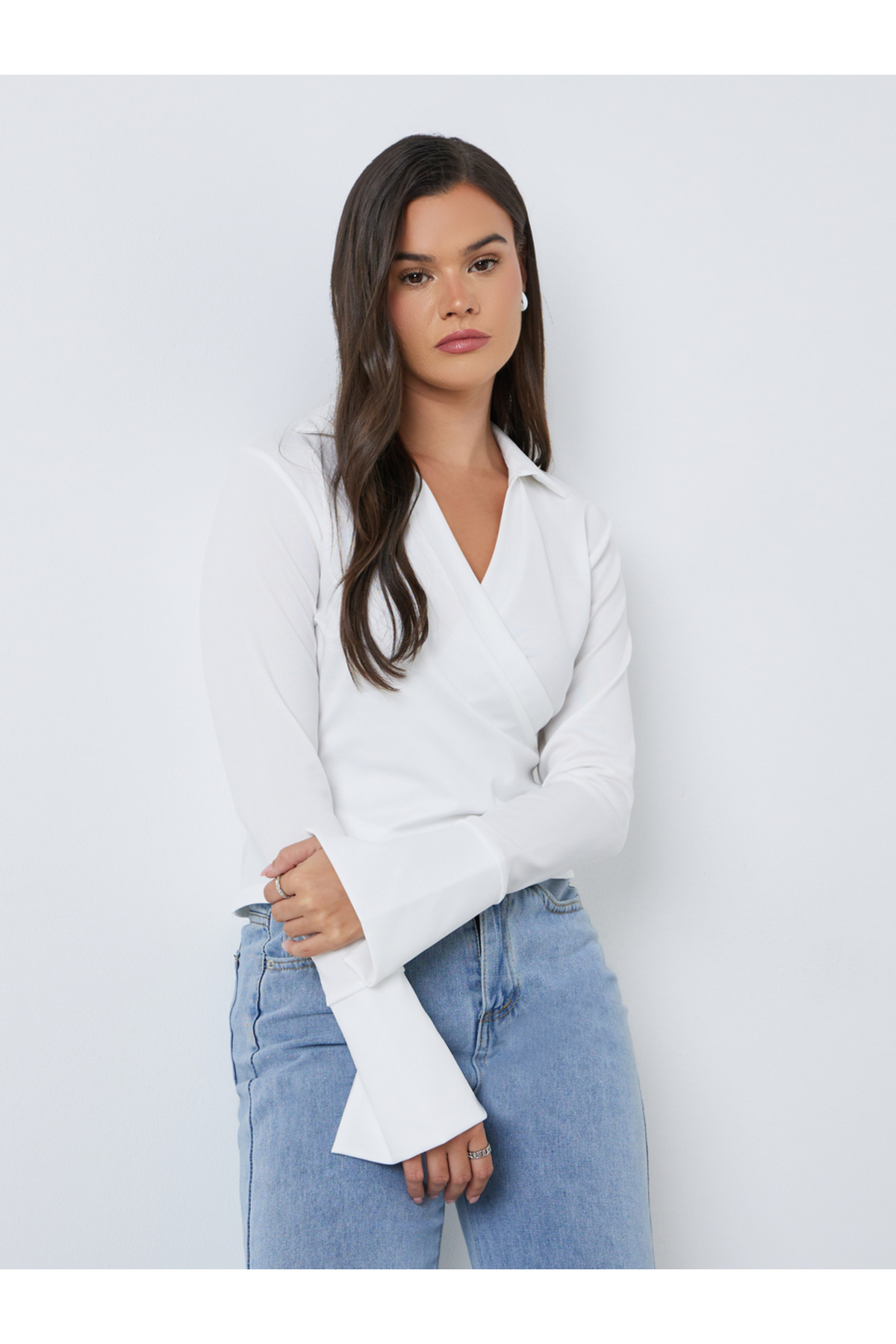 ميزات بلوزة واسع الأرجل بأكمام طويلة وواسعة من Styli
