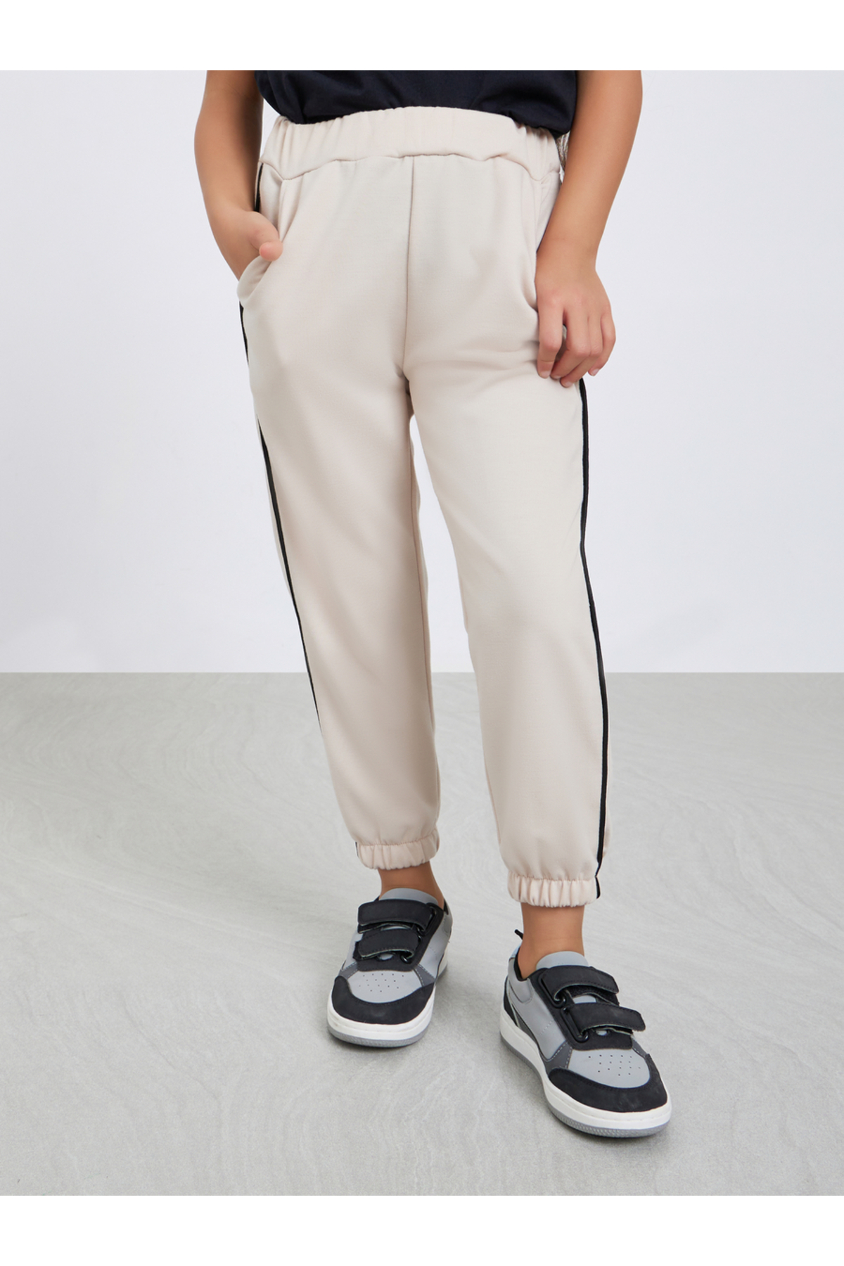 ميزات بنطلون رياضي سادة للبنات باللون البيج مع رباط جانبي من Styli