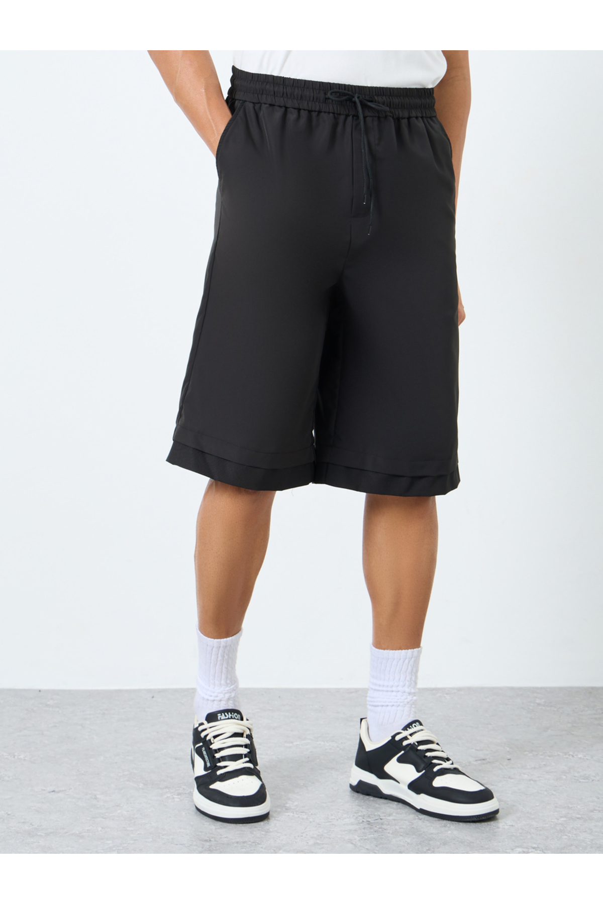 Styli شورت رجالي أسود سادة كبير الحجم برباط