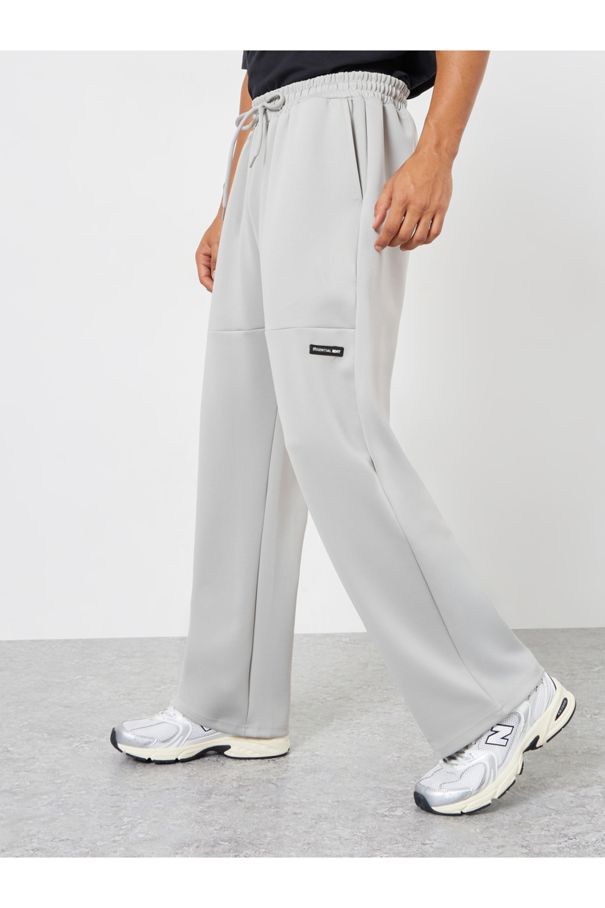 ميزات بنطال رياضي رجالي رمادي سادة أرجل واسعة من Styli