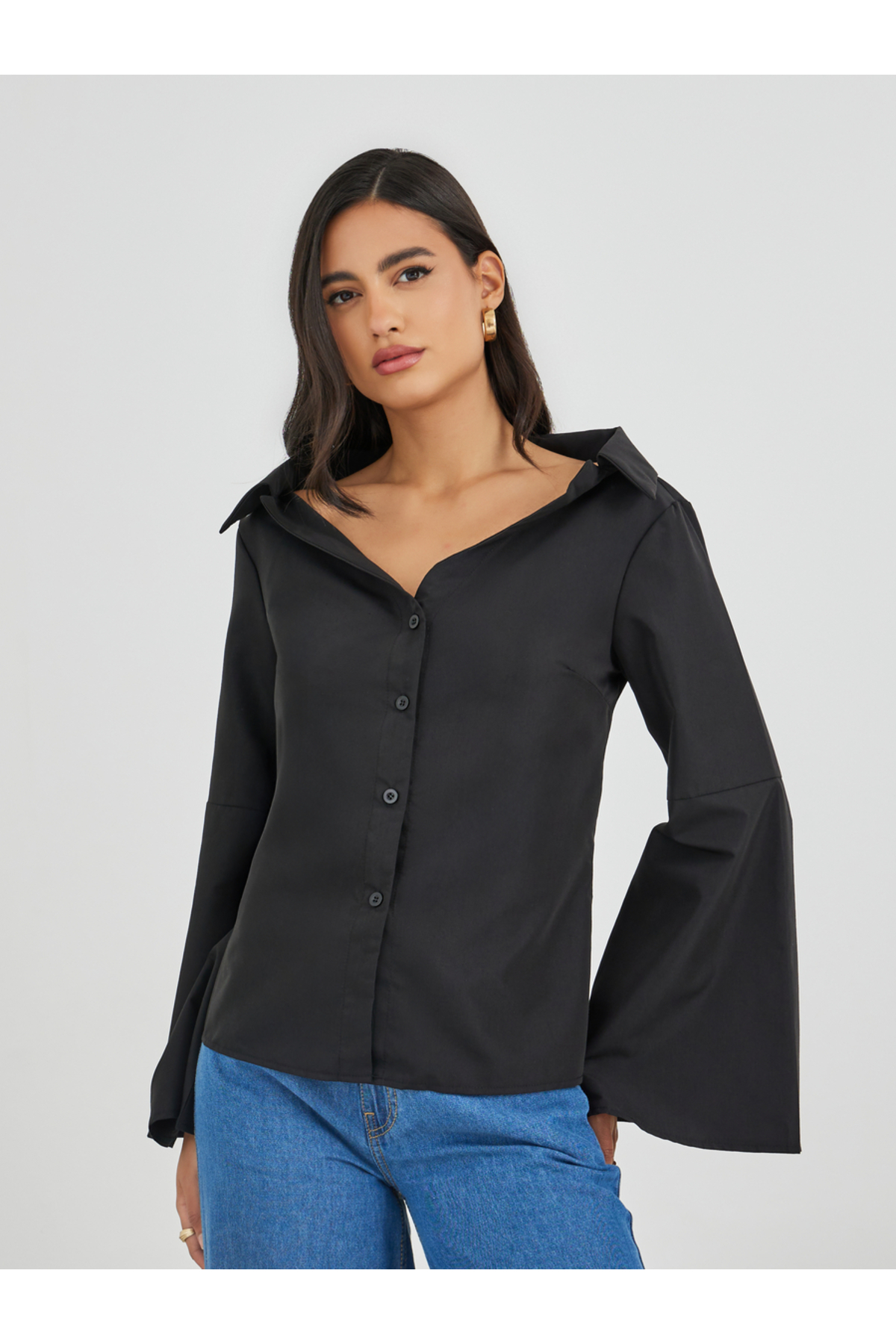 ميزات قميص بدون أكتاف وأزرار من Styli