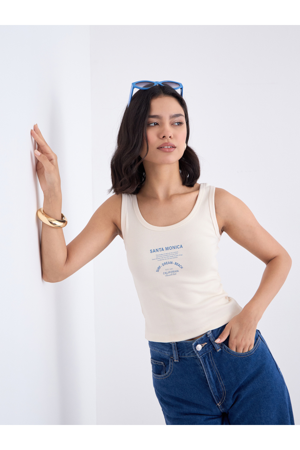ميزات تانك مضلع ملائم باللون الأبيض العاجي من Styli