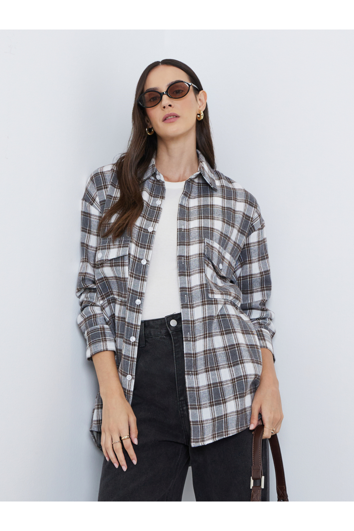 Styli قميص قصة فضفاضة بطبعة مربعات وأزرار