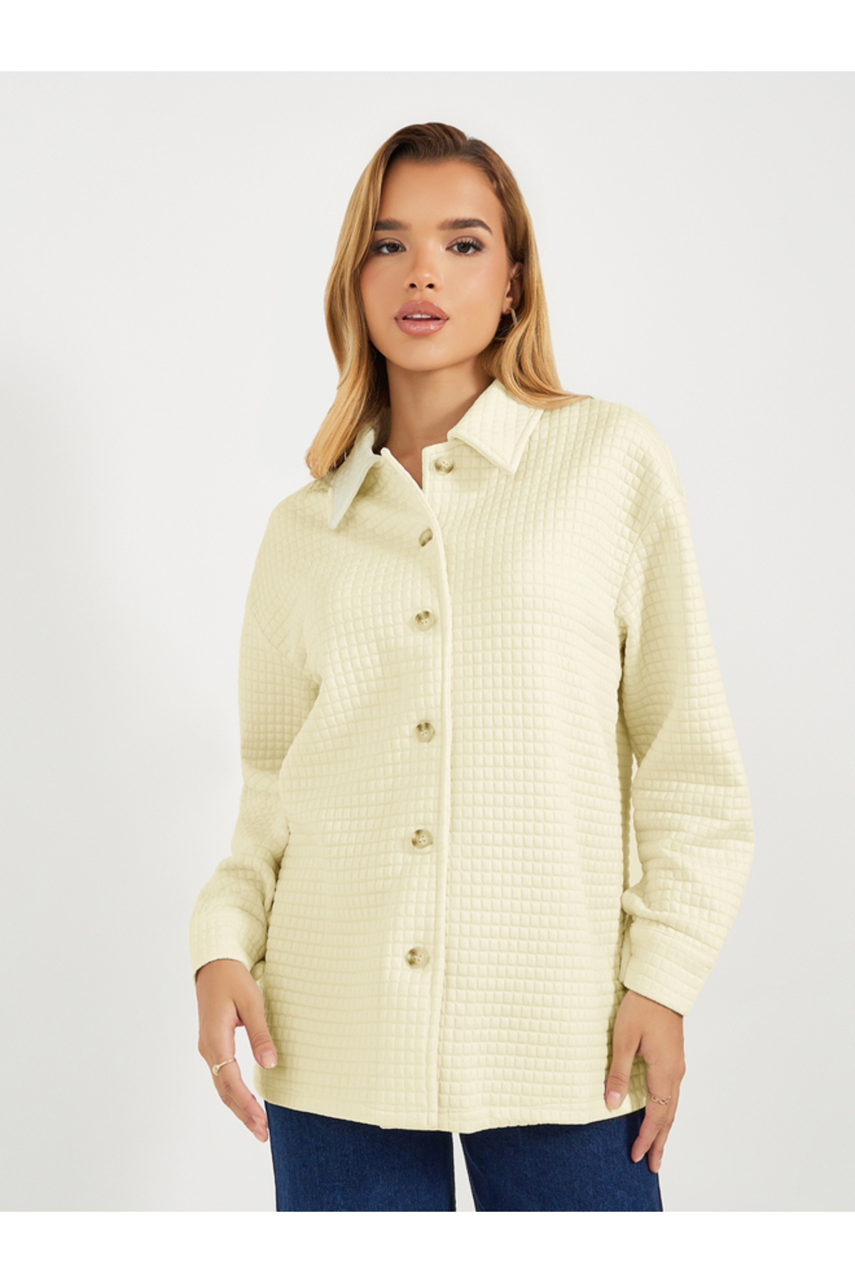 ميزات سترة كبيرة الحجم ذات أزرار منقوشة طويلة الأكمام من Styli