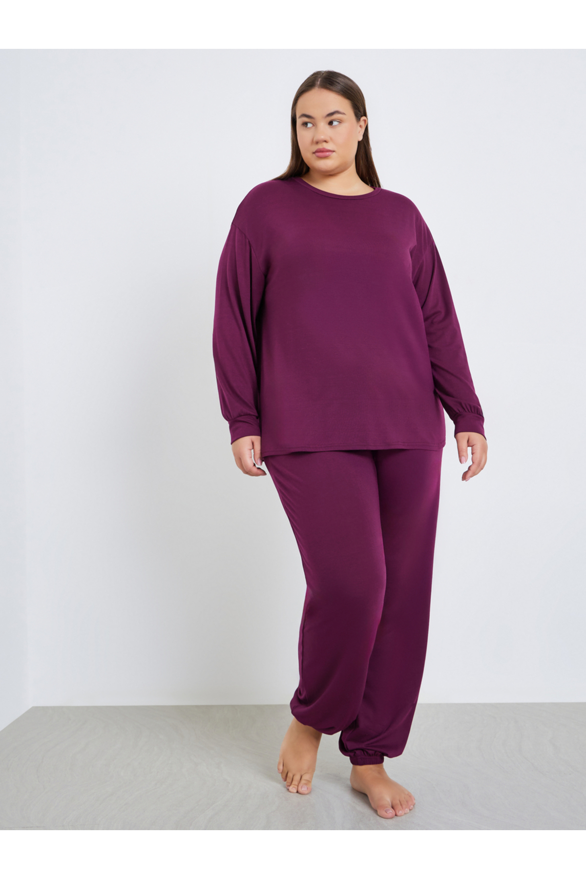 Styli طقم بيجاما وبلوزة بأكمام منسدلة سادة بمقاسات كبيرة