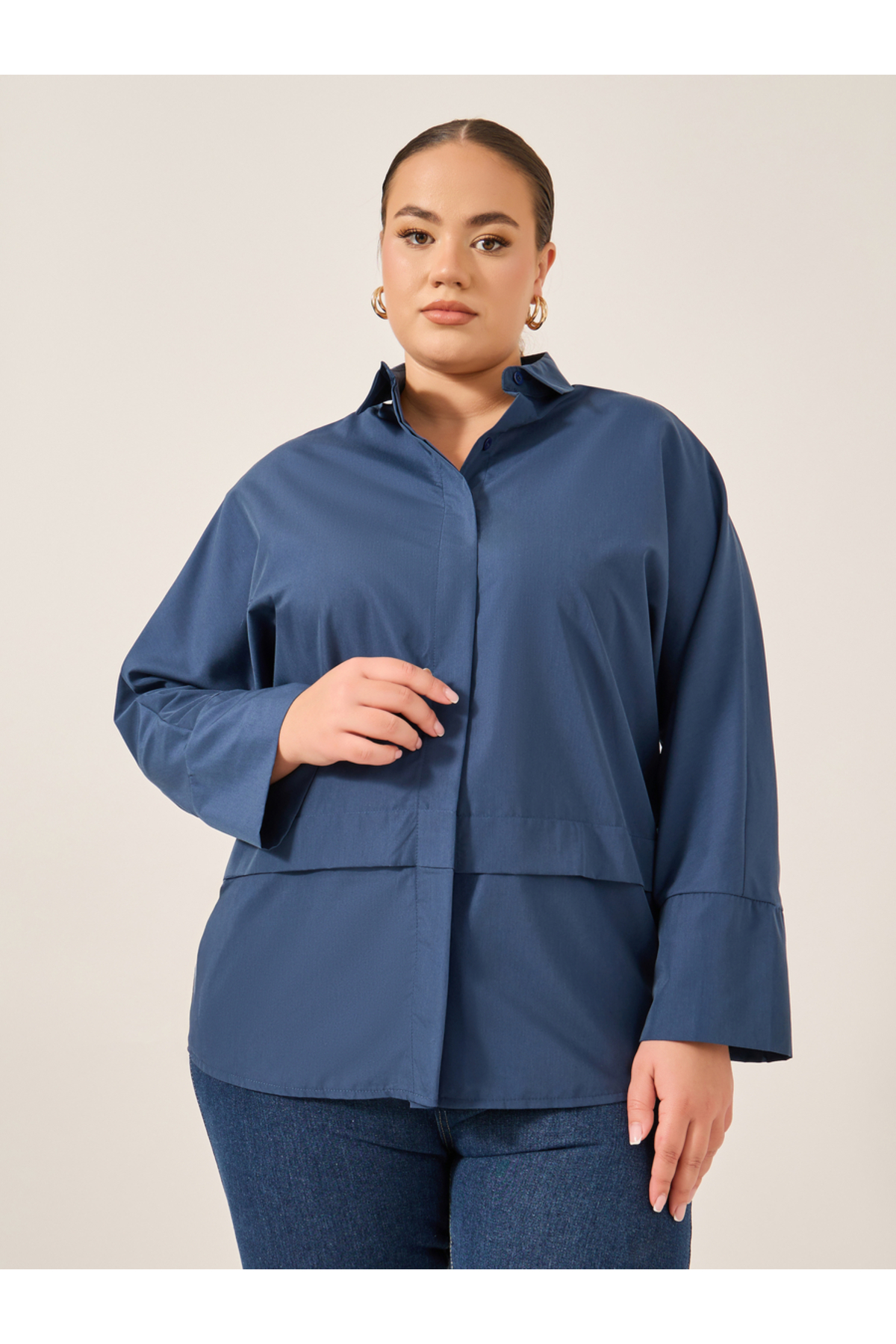 ميزات قميص سادة بأكمام طويلة ومقاس كبير من Styli
