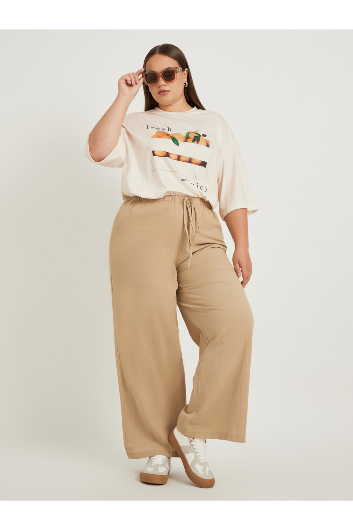 Styli بنطلون واسع الساق سادة بمقاس كبير مع خصر برباط