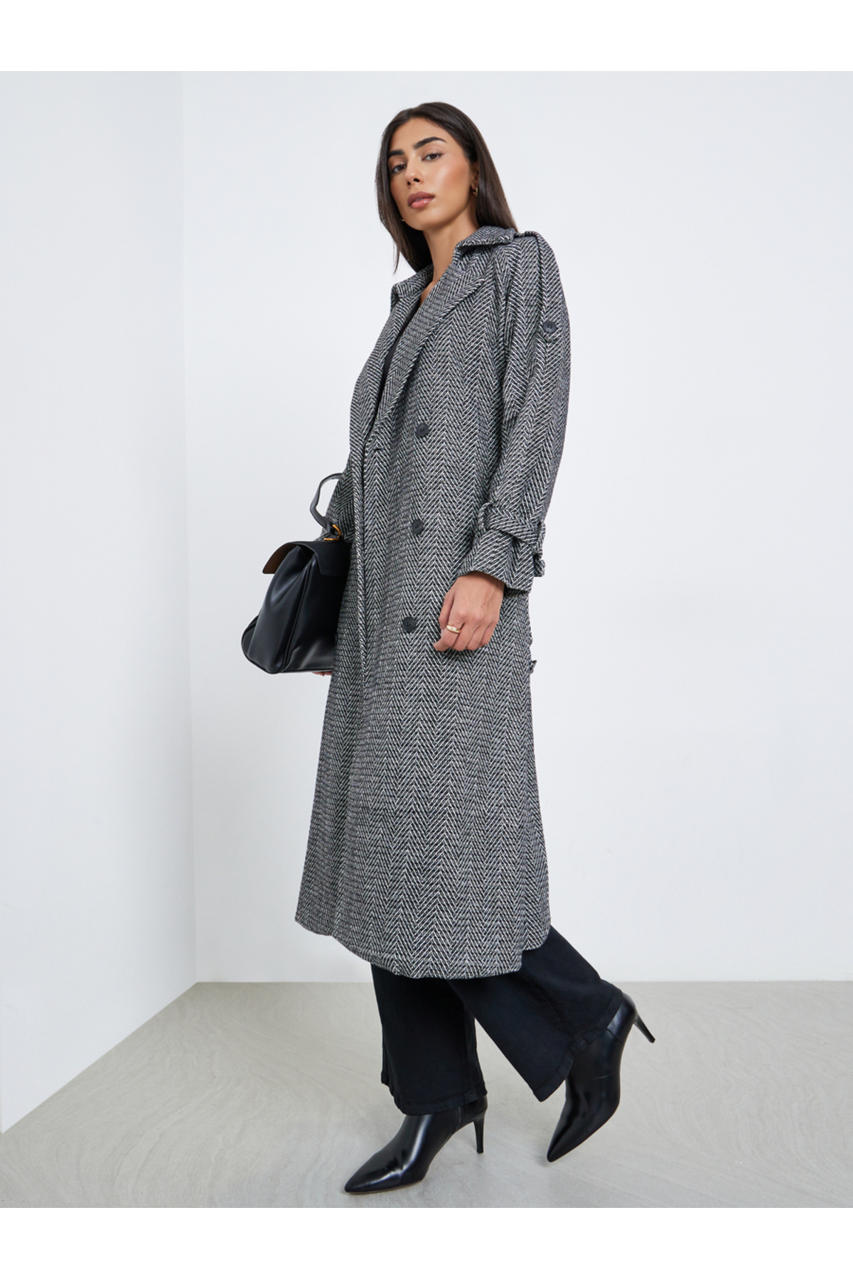 ميزات معطف منقوش مزدوج الصدر بقصّة عادية من Styli