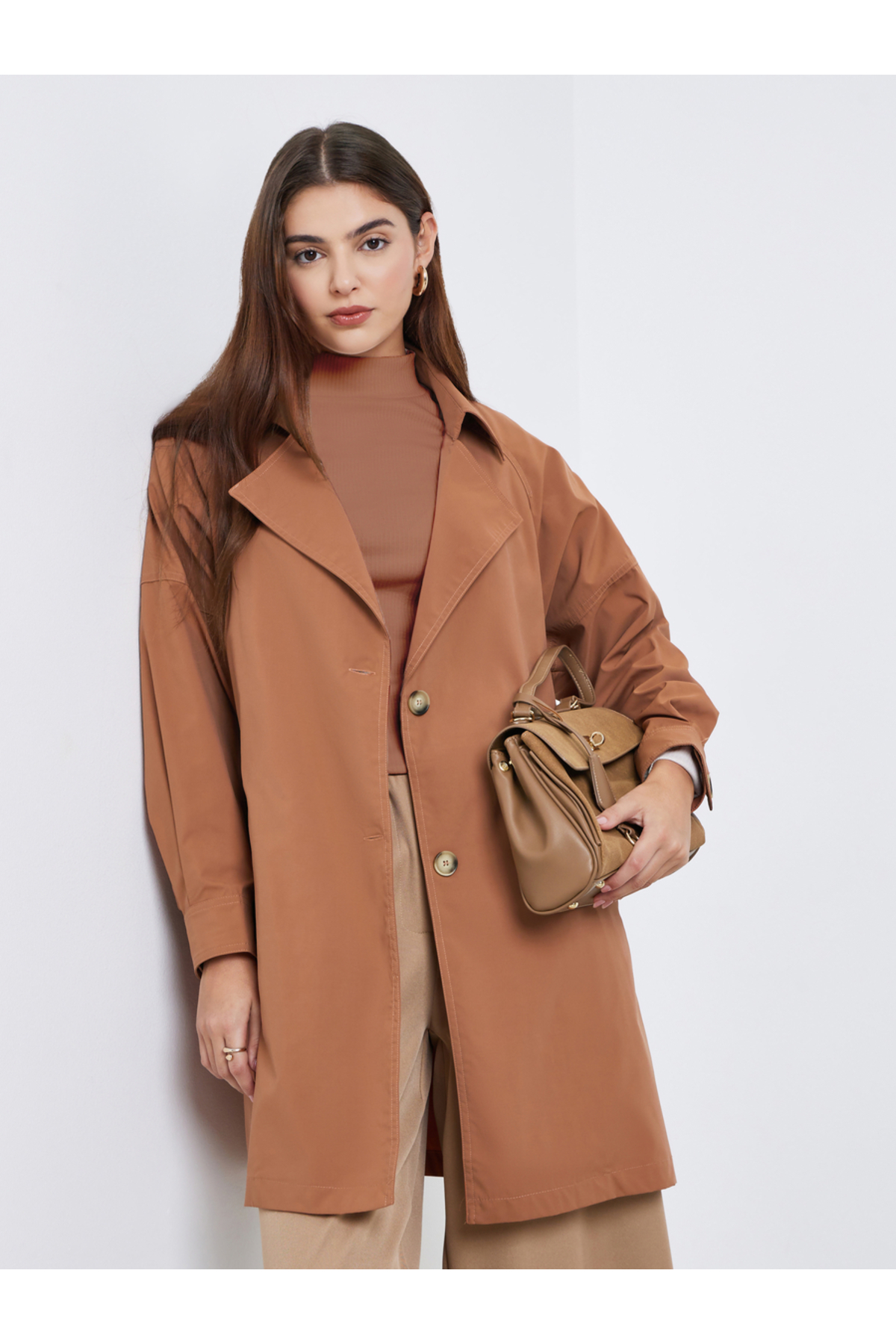 ميزات معطف ترنش طويل من الصدأ بأزرار من Styli
