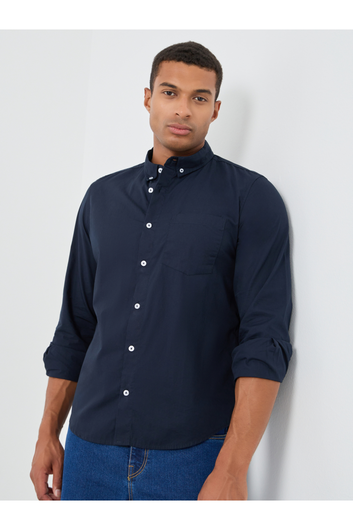ميزات قميص بوبلين سادة بأزرار وقصّة عادية من Styli
