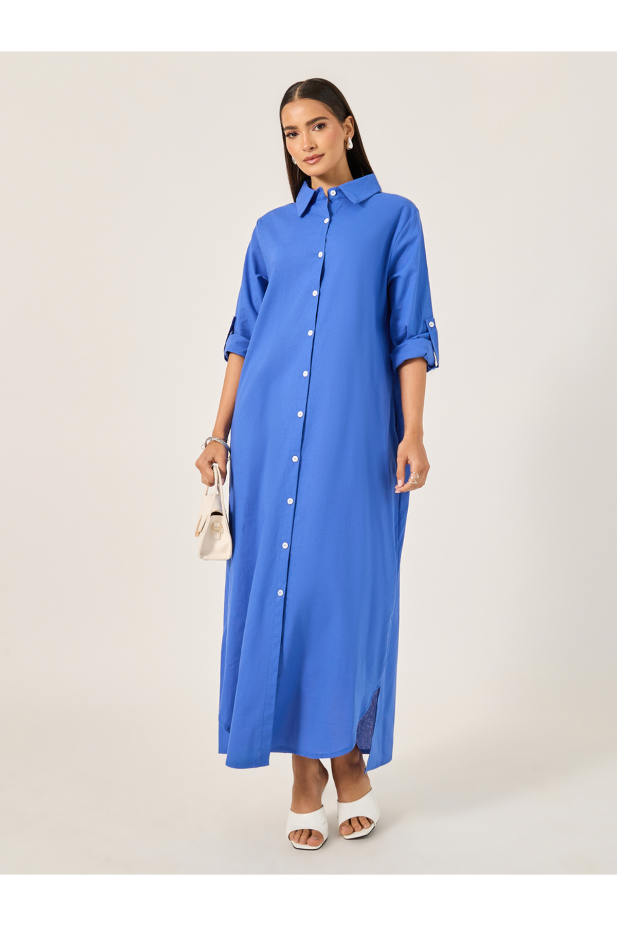 ميزات فستان ماكسي سادة بأزرار من Styli