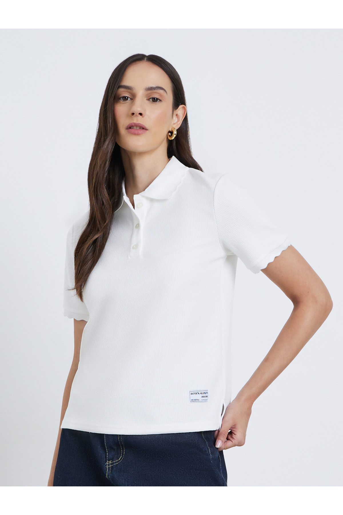 ميزات تي شيرت بولو سادة بأزرار وقصّة عادية من Styli