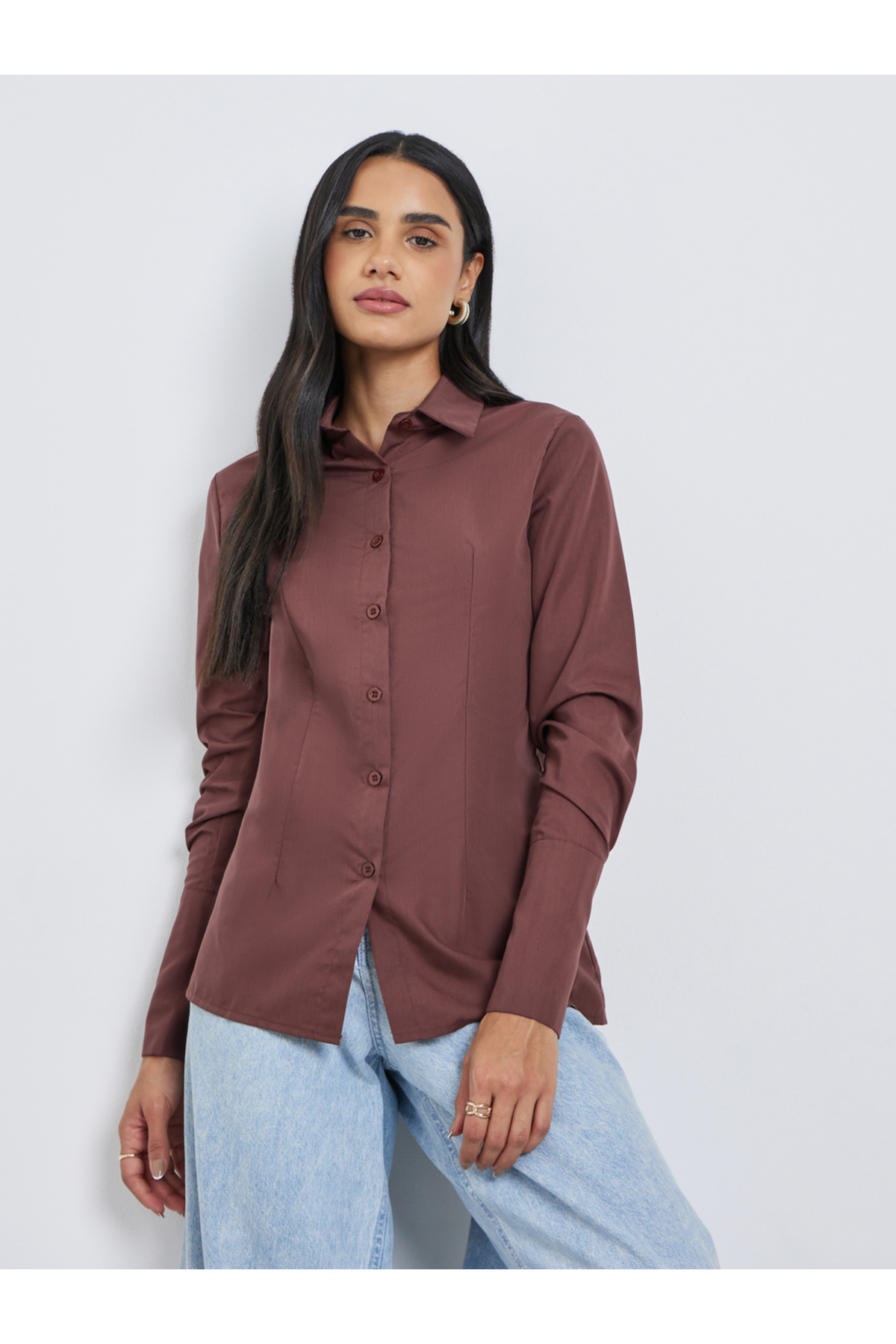 Styli قميص سادة بأزرار وياقة واسعة