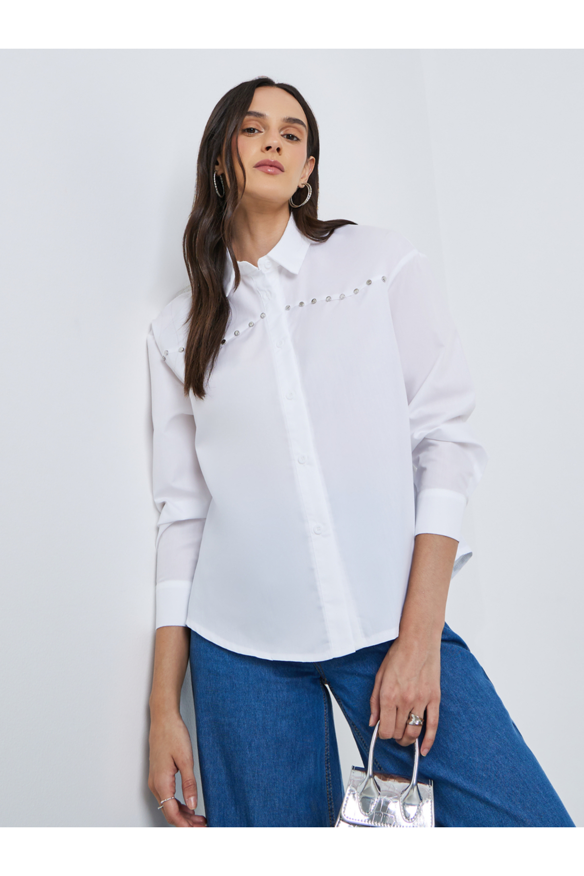 Styli قميص سادة بأزرار وياقة واسعة