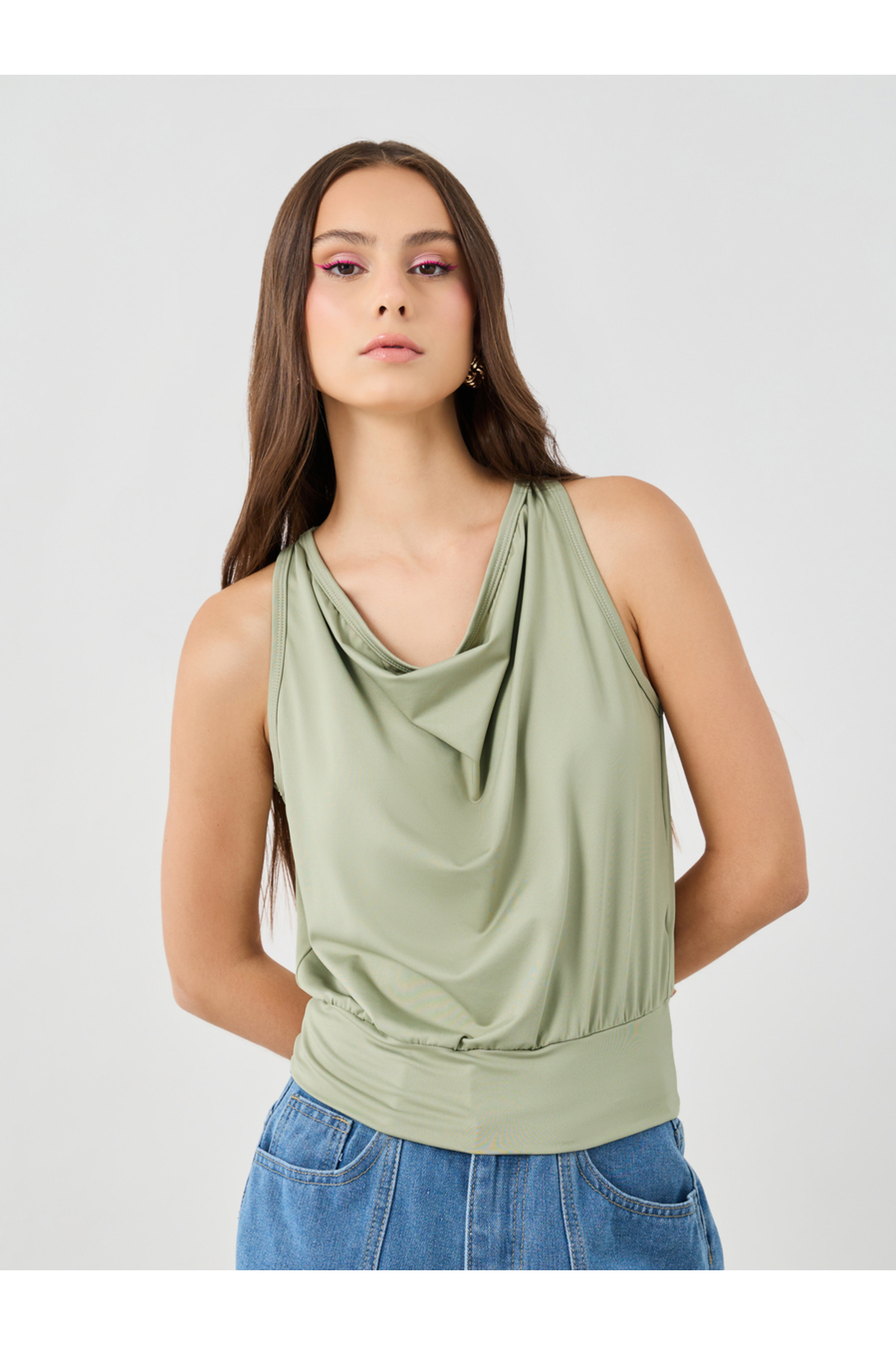 ميزات بلوزة سادة بدون أكمام برقبة دائرية من Styli