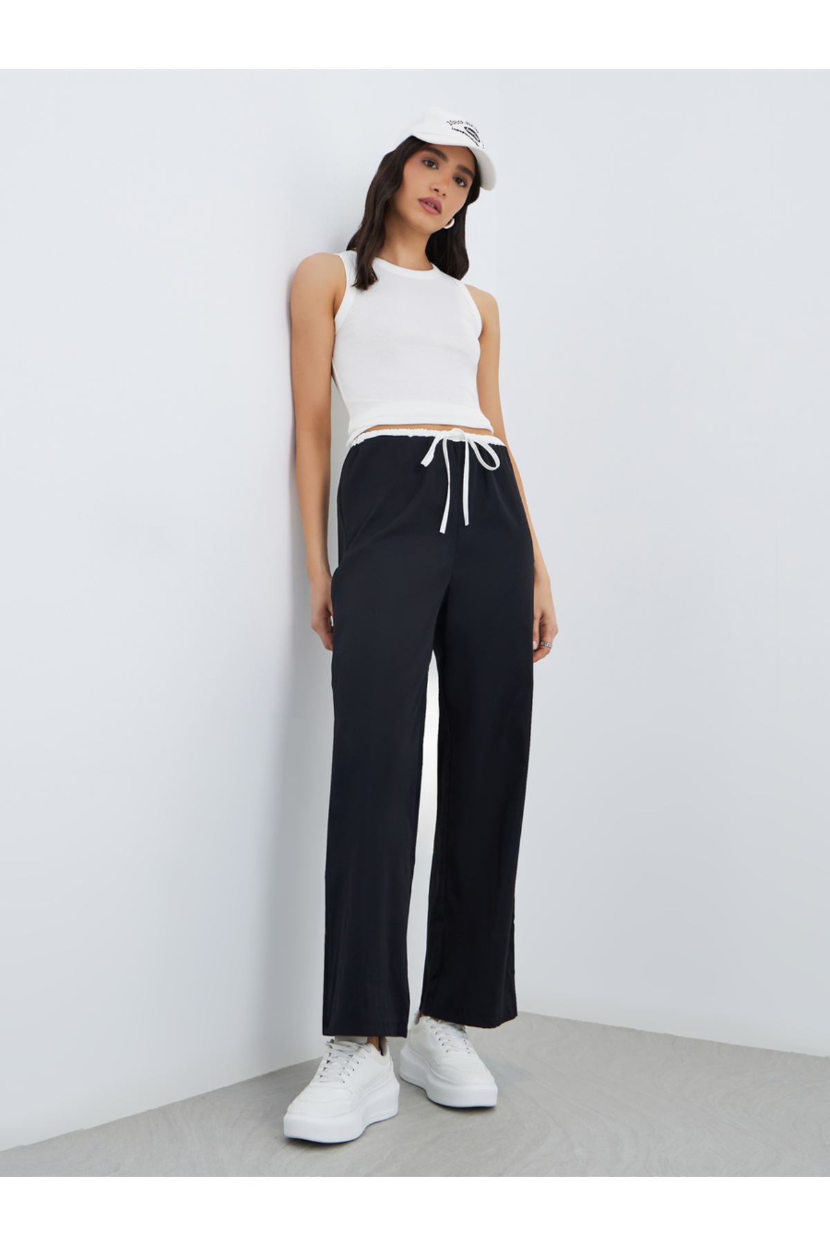 Styli بنطال واسع الساق بطبقة مزدوجة متينة ورباط خصر