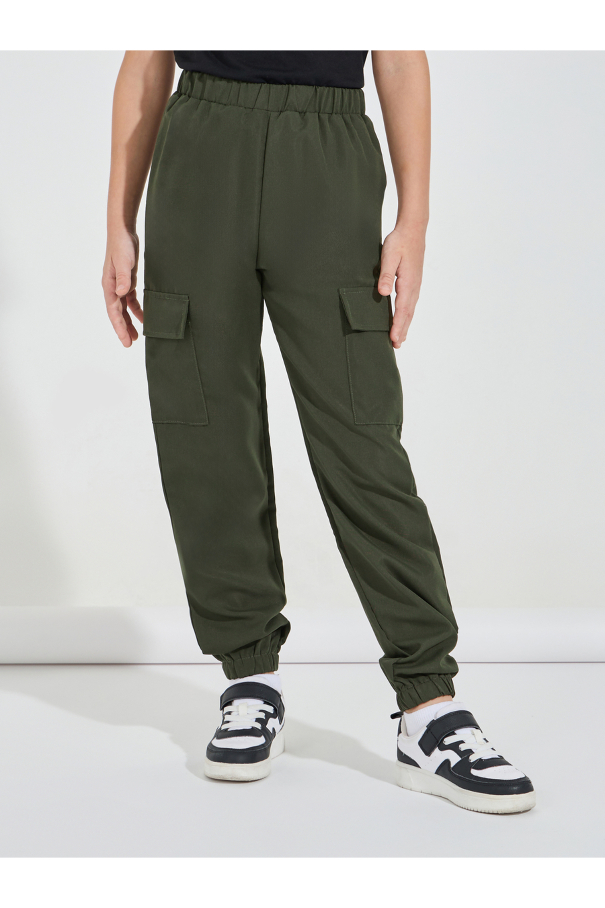 ميزات بنطال كارجو سادة بخصر مطاطي من Styli