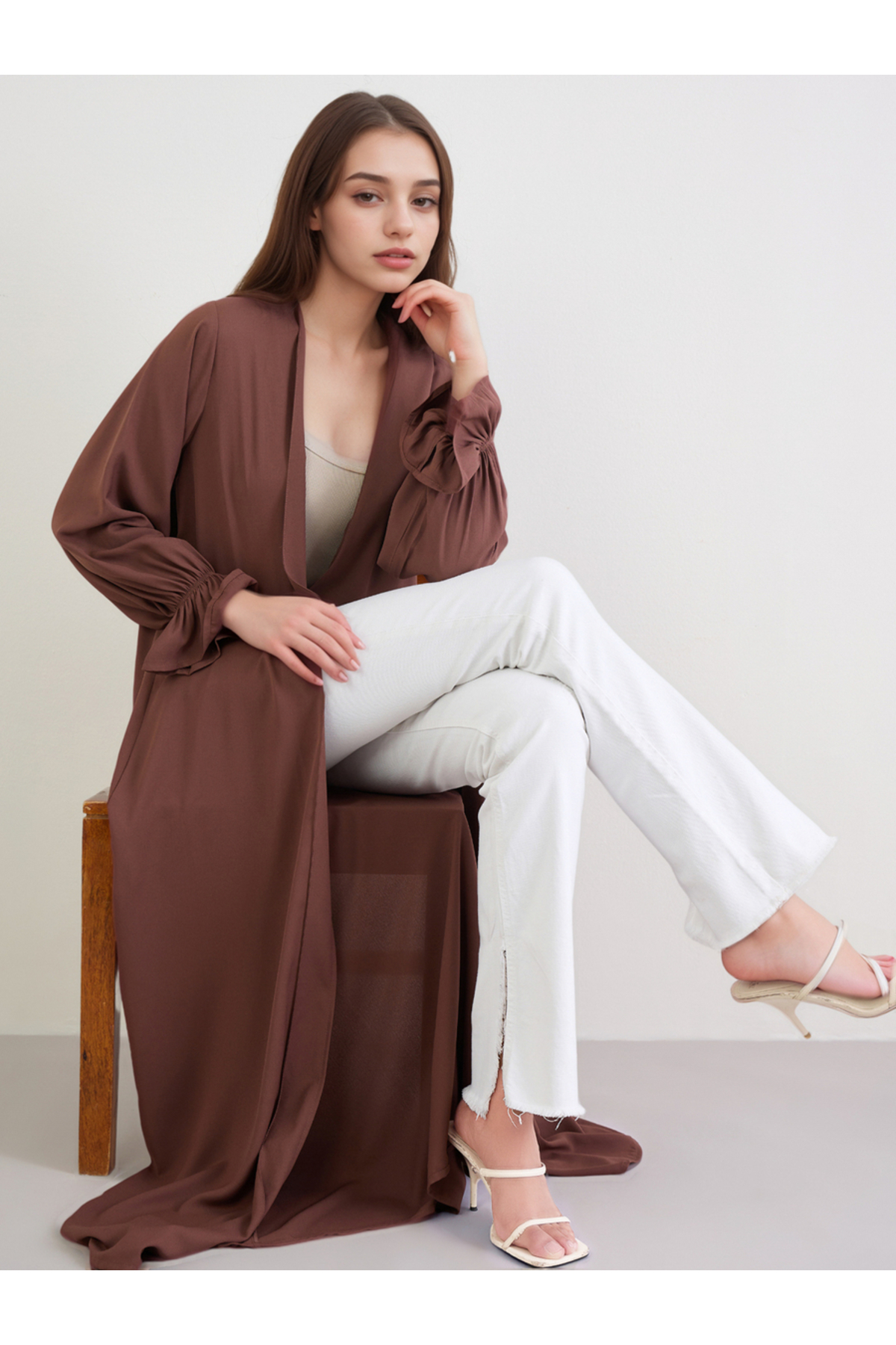 Styli عباية سادة بأكمام مكشكشة مفتوحة من الأمام