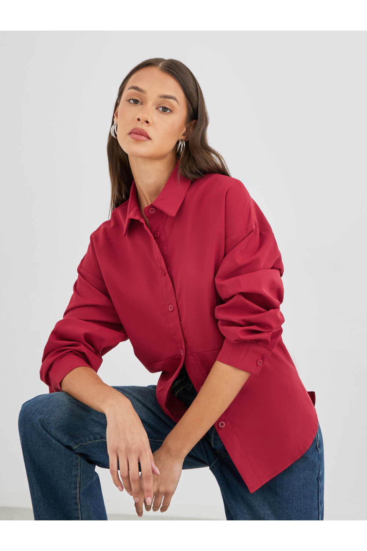 Styli قميص سادة كبير الحجم بأكمام طويلة