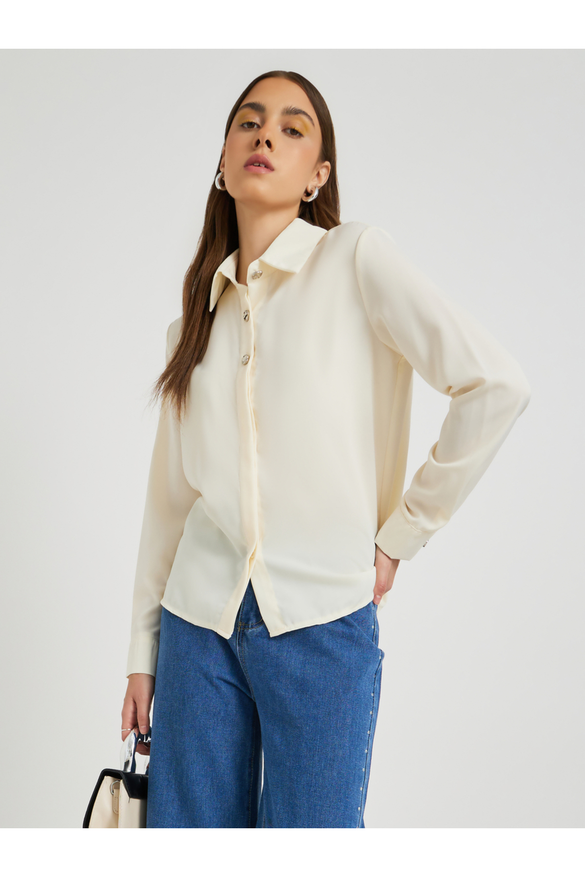 Styli قميص سادة بأكمام طويلة وياقة واسعة