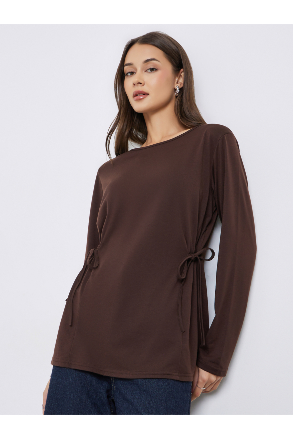 Styli بلوزة محبوكة فضفاضة سادة مع أربطة