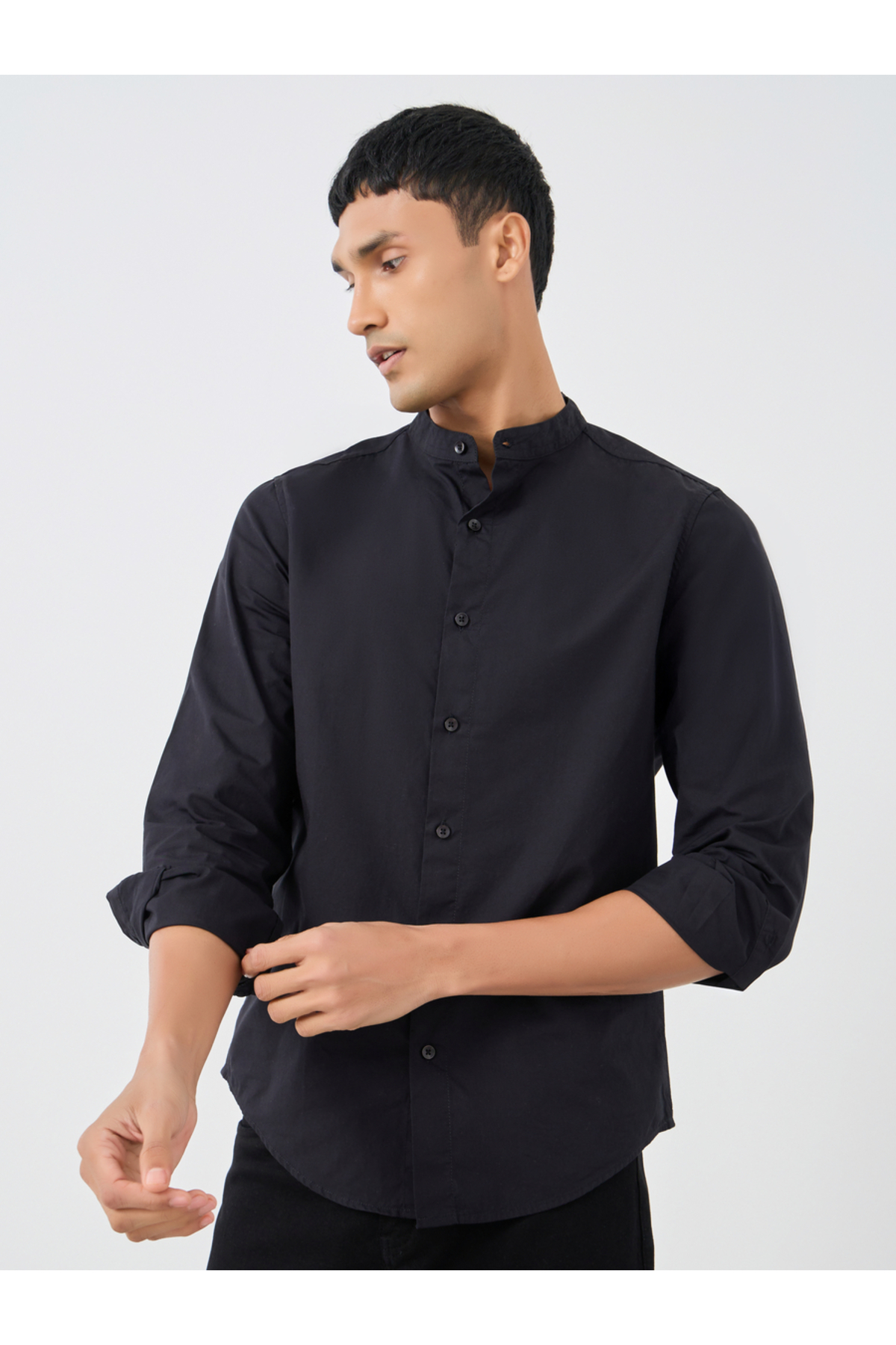 ميزات قميص بوبلين سادة بياقة ماندرين وقصّة عادية من Styli