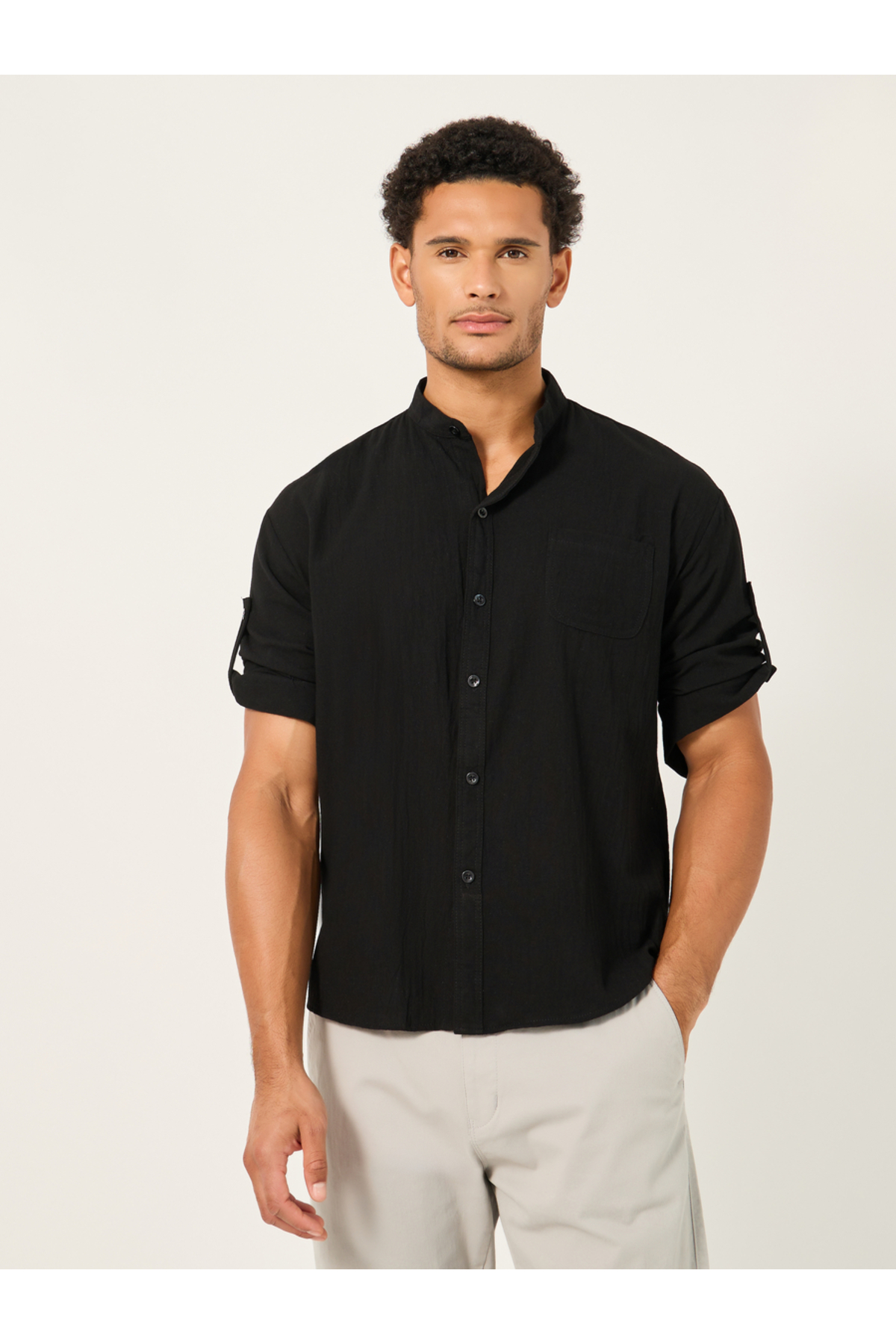 Styli قميص بقصّة عادية وياقة ماندرين سادة