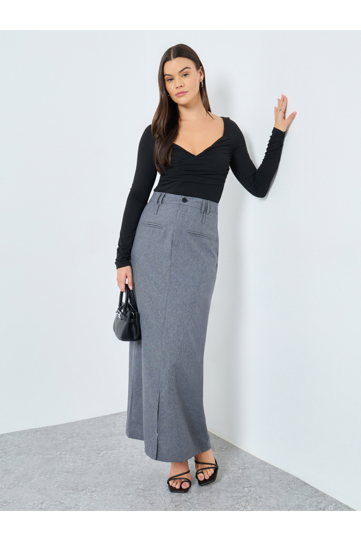 ميزات تنورة ماكسي سادة مع شق أمامي وجيوب من Styli