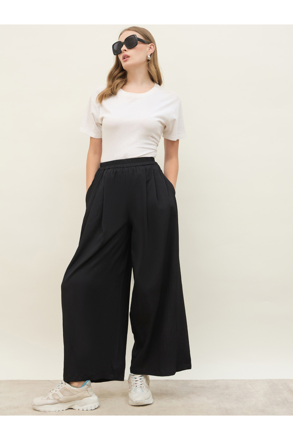 Styli بنطال واسع الساق متوسط الارتفاع