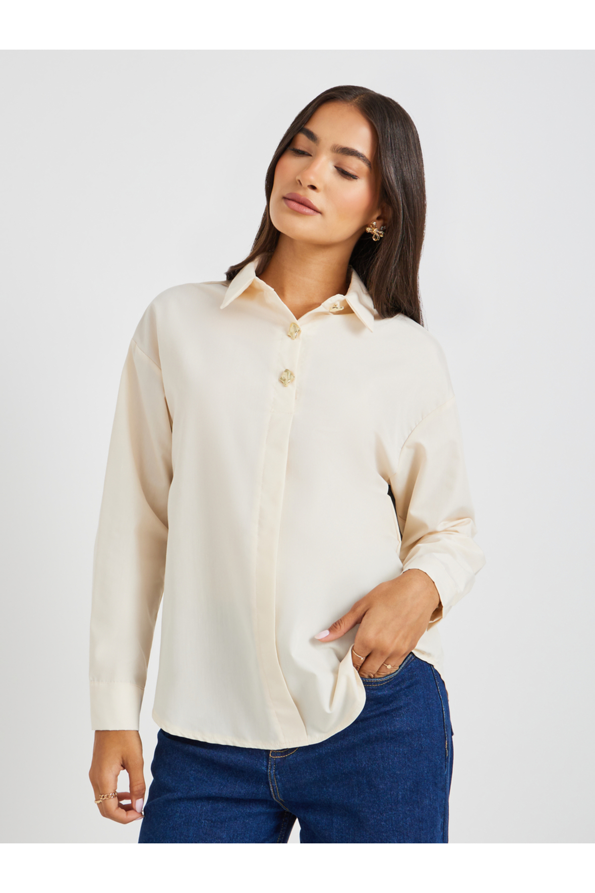 Styli قميص سادة كبير الحجم بياقة واسعة وأزرار