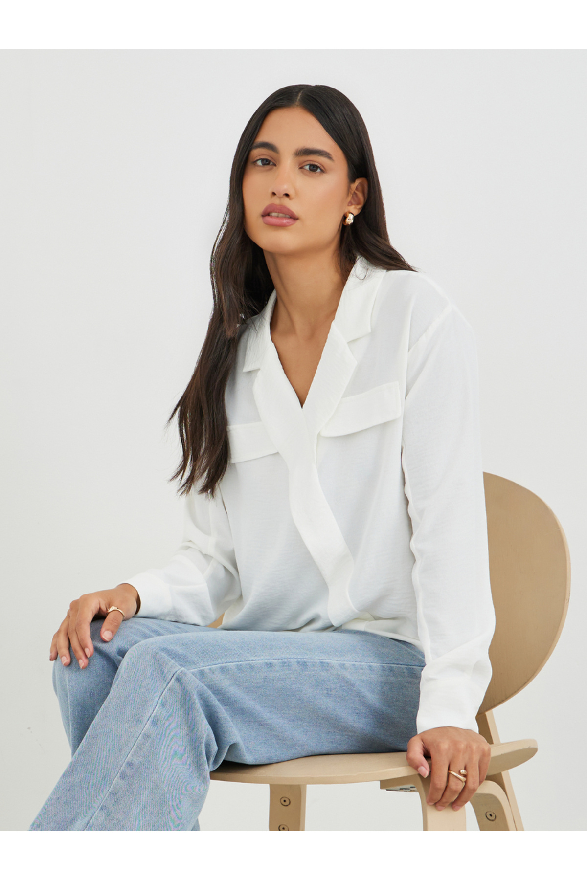 Styli بلوزة كبيرة الحجم بتصميم ملفوف مع ياقة مدببة