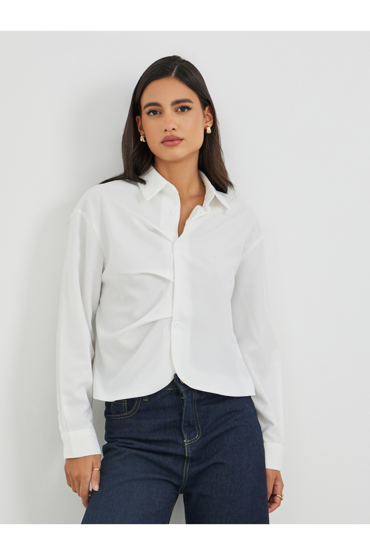 ميزات قميص سادة مطوي بأزرار أمامية من Styli