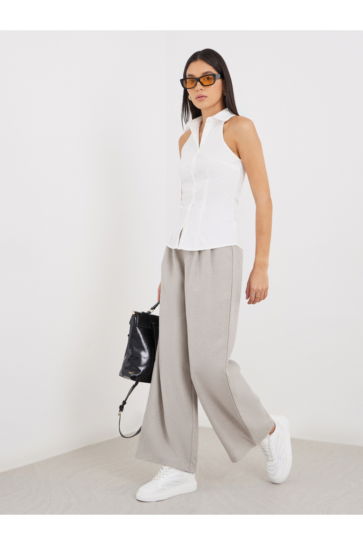 ميزات بنطال واسع الساق مطوي سادة من Styli