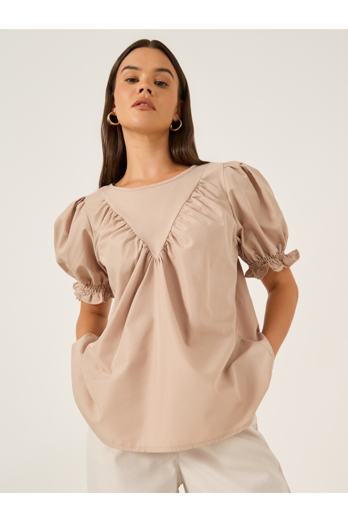 Styli بلوزة سادة بأكمام منفوخة وأساور مطرزة