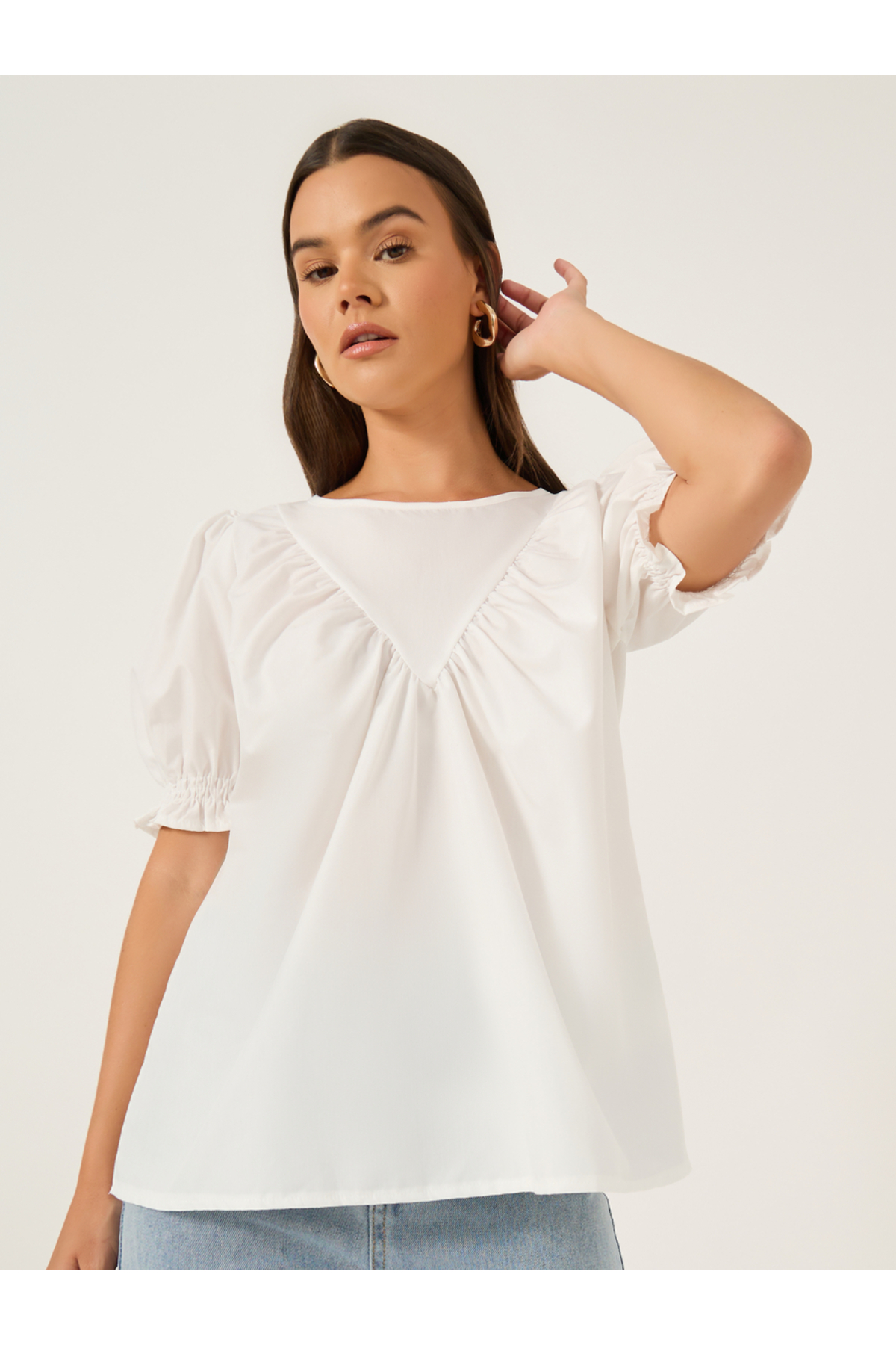 Styli بلوزة سادة بأكمام منفوخة وأساور مطرزة