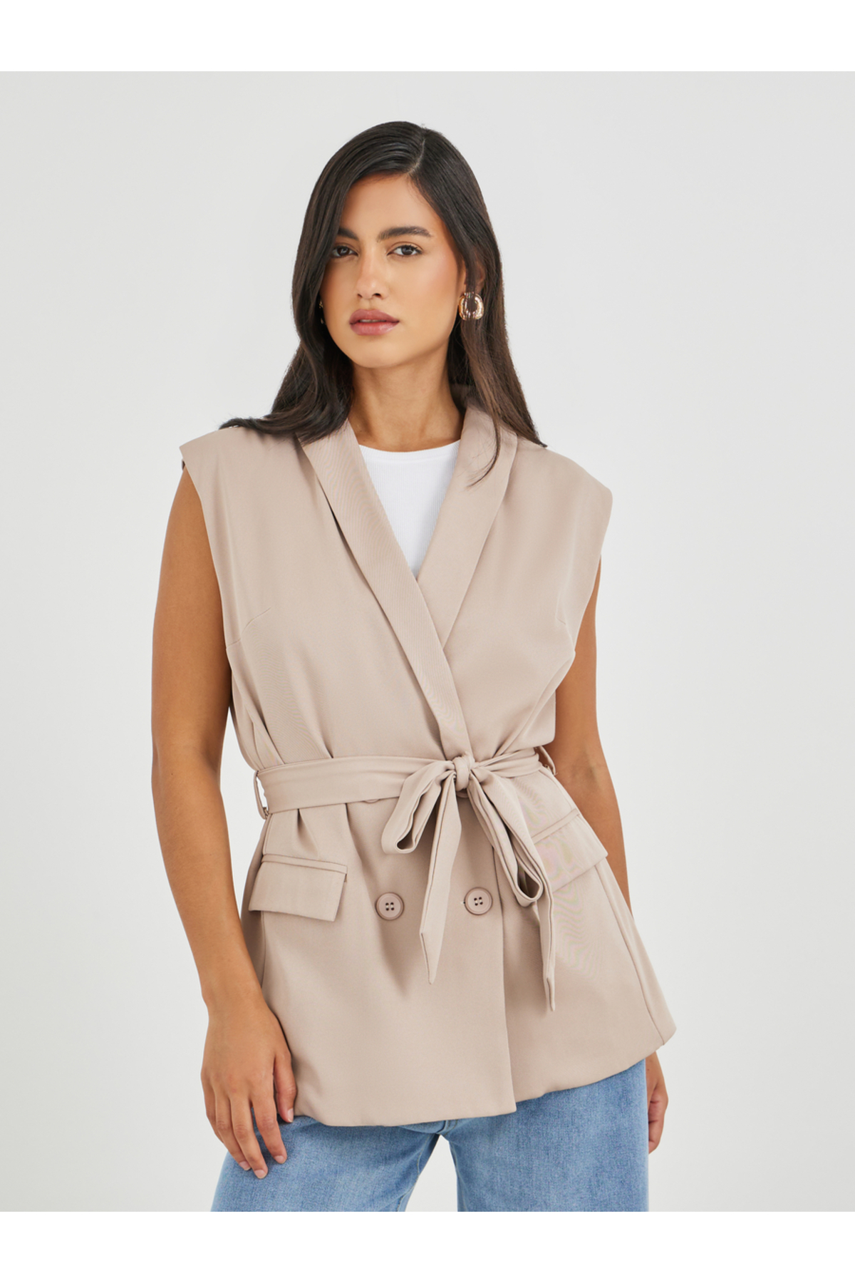 ميزات سترة بلا أكمام بحزام وطول عادي وقصّة عادية من Styli