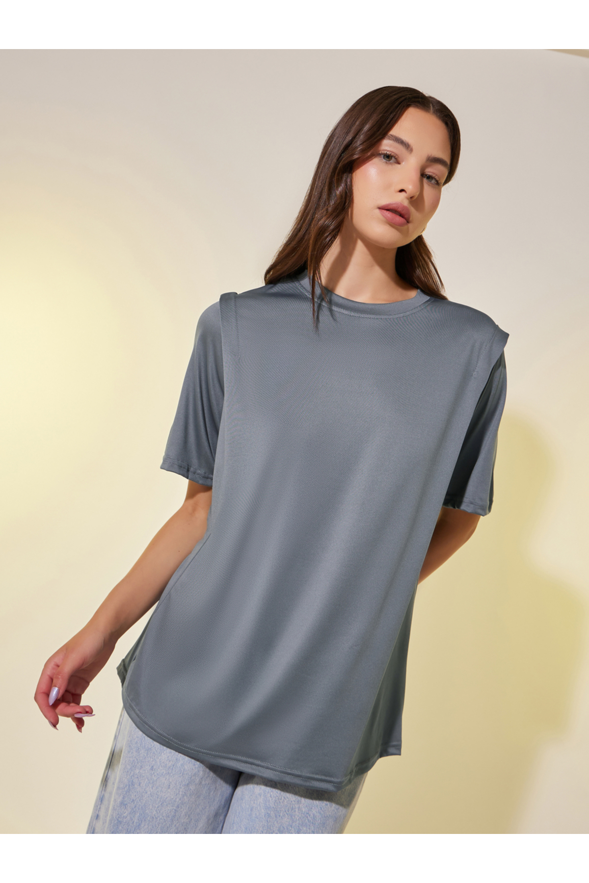 Styli تي شيرت سادة كبير الحجم برقبة دائرية
