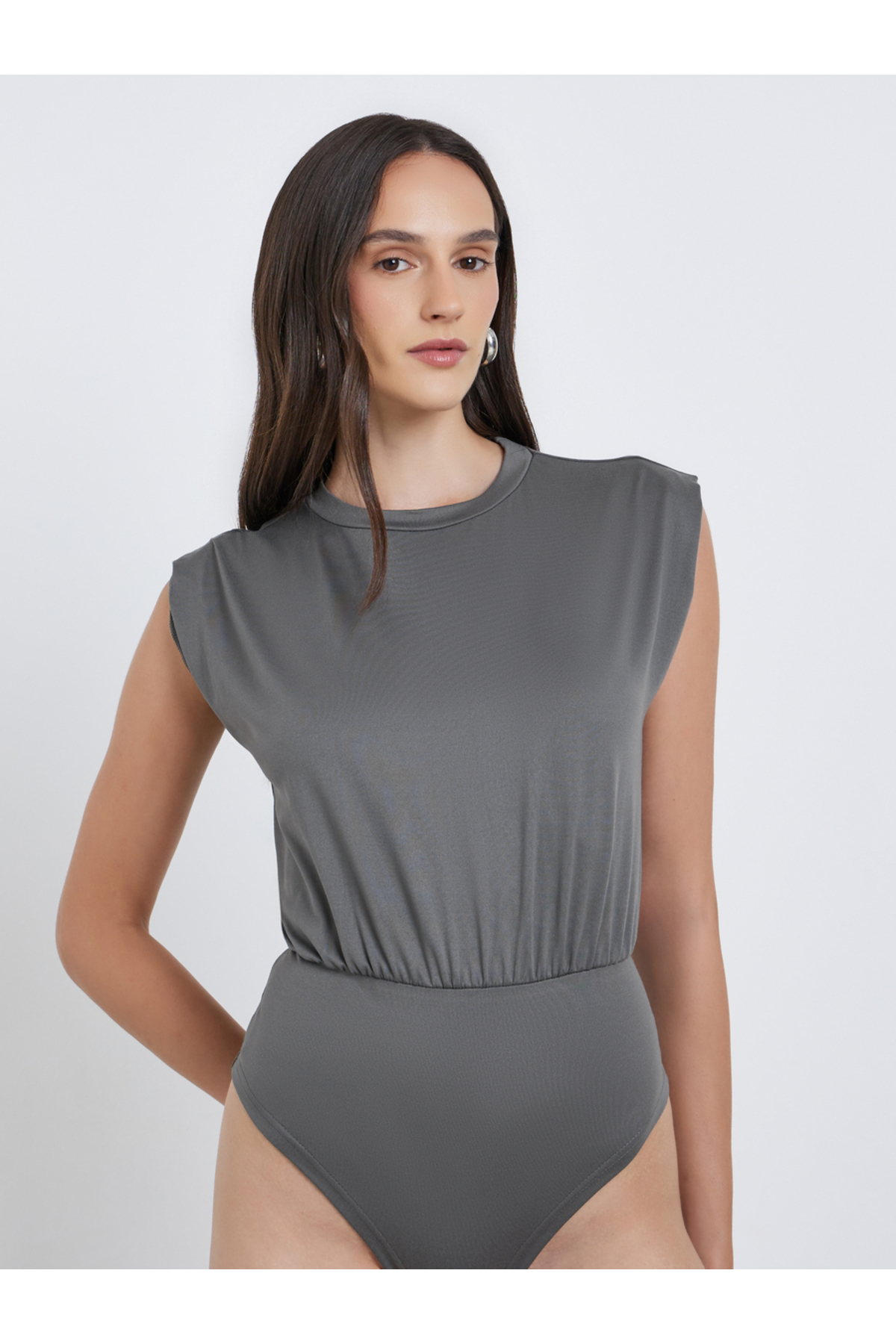 Styli بدلة جسم سادة بدون أكمام ورقبة مستديرة