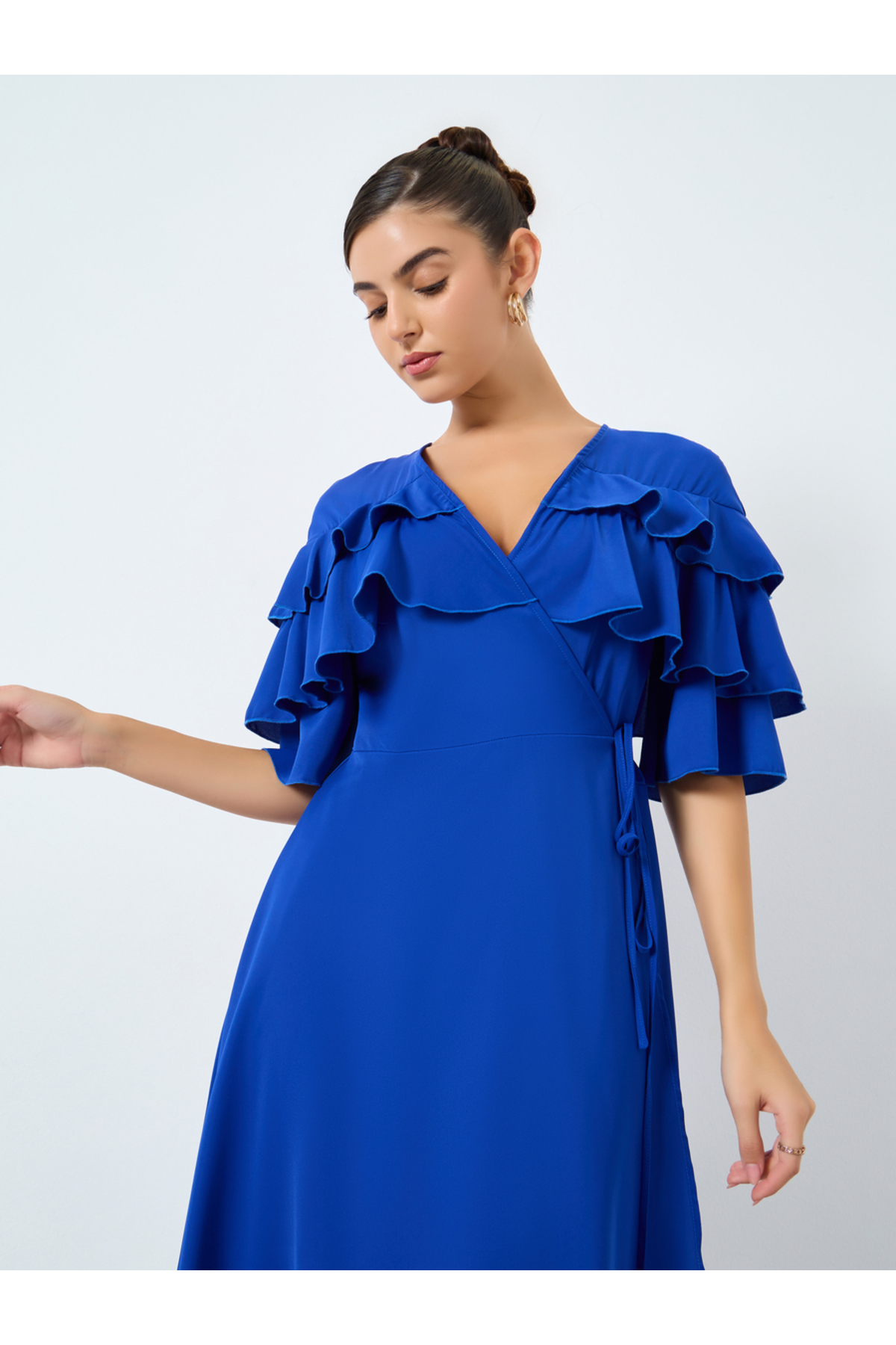 Styli فستان ميدي ملفوف بتفاصيل كشكشة