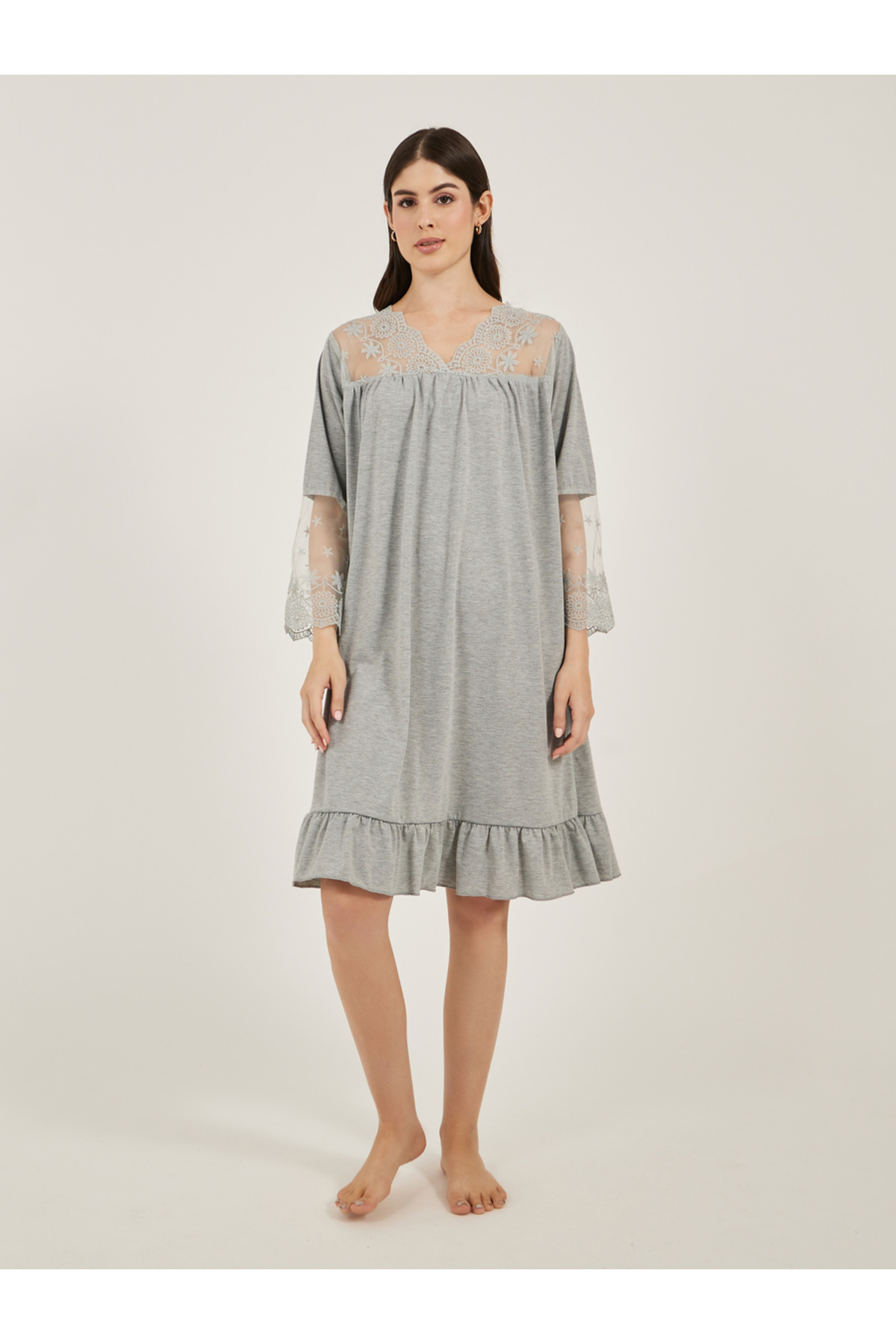 Styli قميص نوم سادة ذو حافة مكشكشة مع دانتيل
