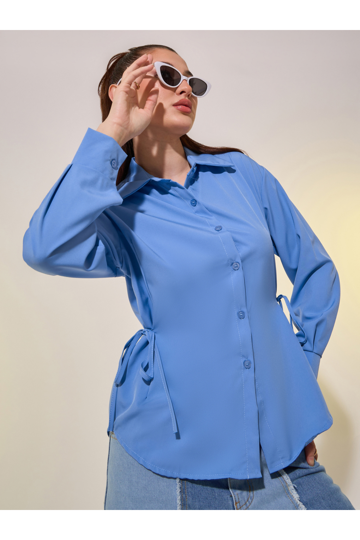 ميزات قميص سادة برباط على الخصر الجانبي من Styli