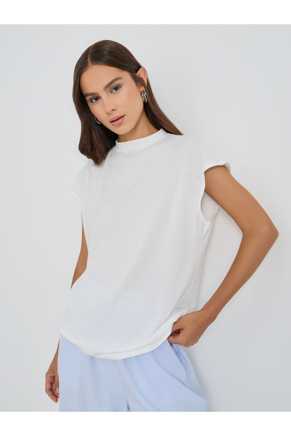 ميزات تي شيرت سادة بدون أكمام بقصّة عادية من Styli