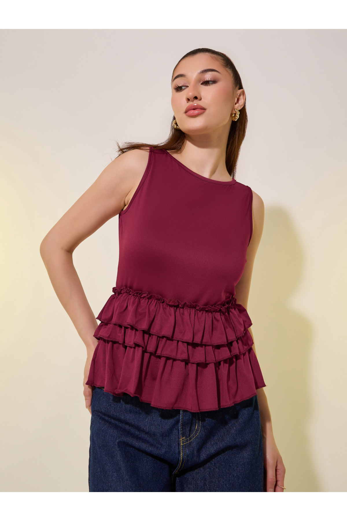 ميزات قميص داخلي سادة بدون أكمام مع حافة مكشكشة من Styli