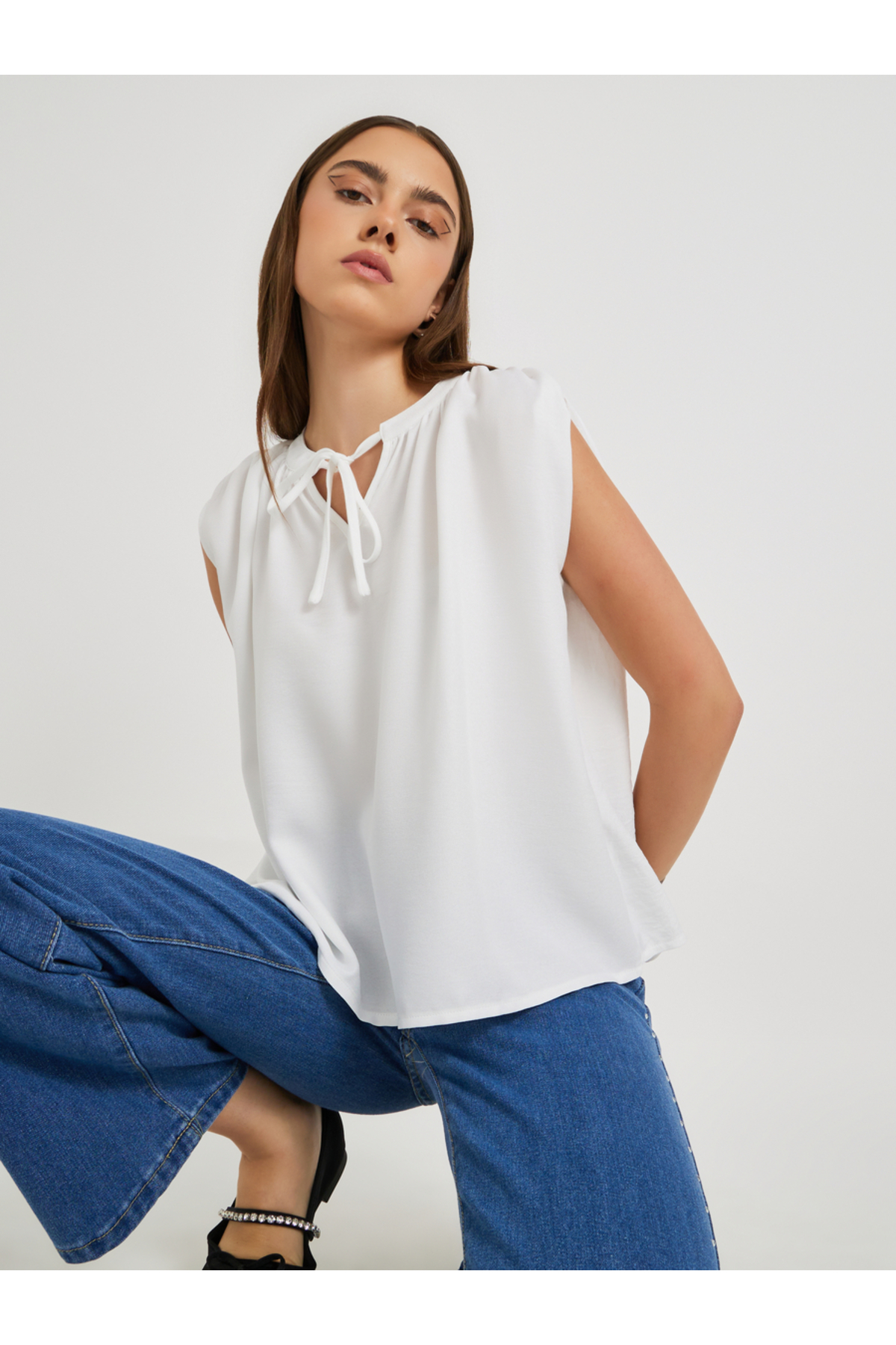 ميزات بلوزة سادة بدون أكمام برباط حول الرقبة من Styli