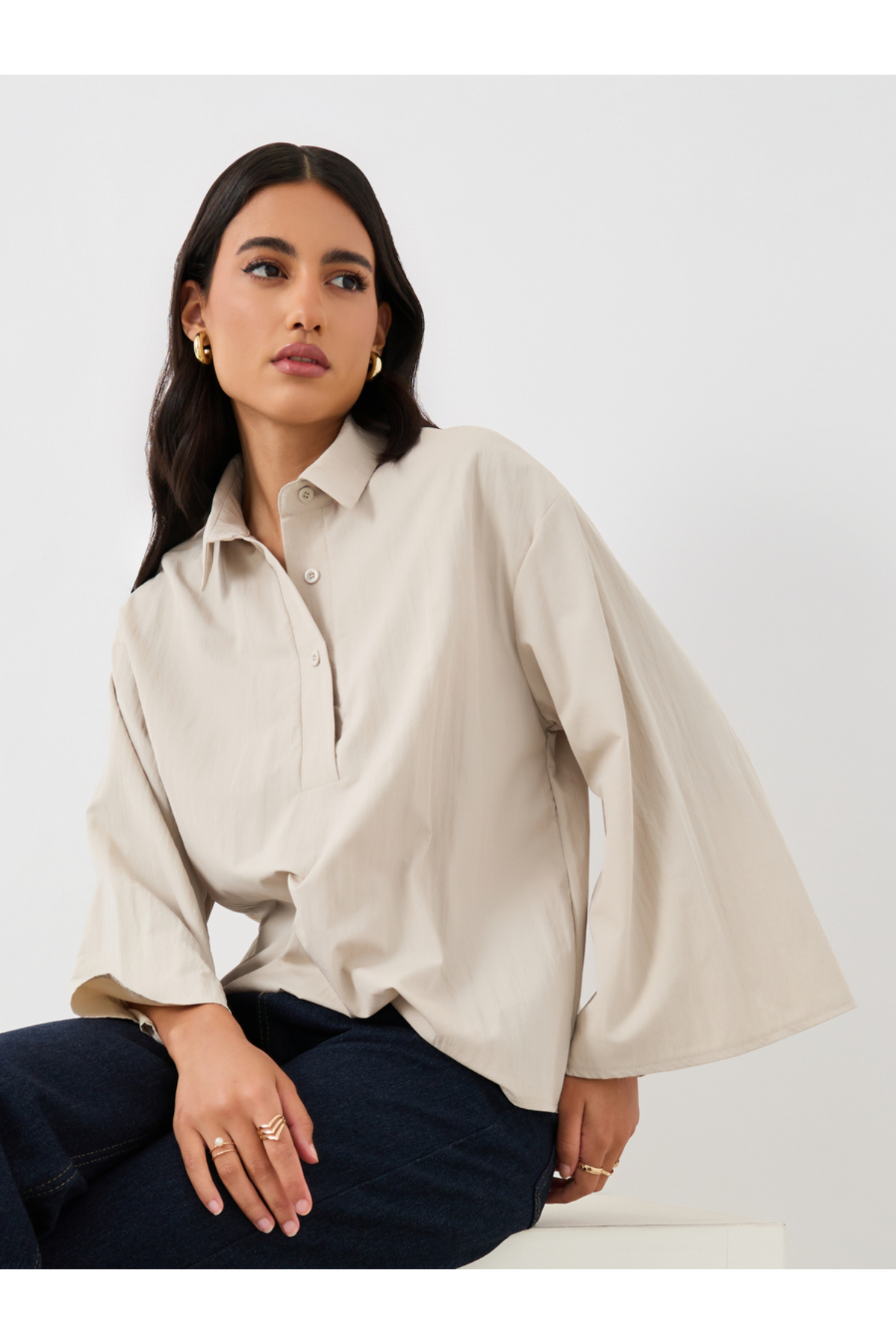 ميزات قميص سادة بياقة واسعة وقصّة مربعة من Styli