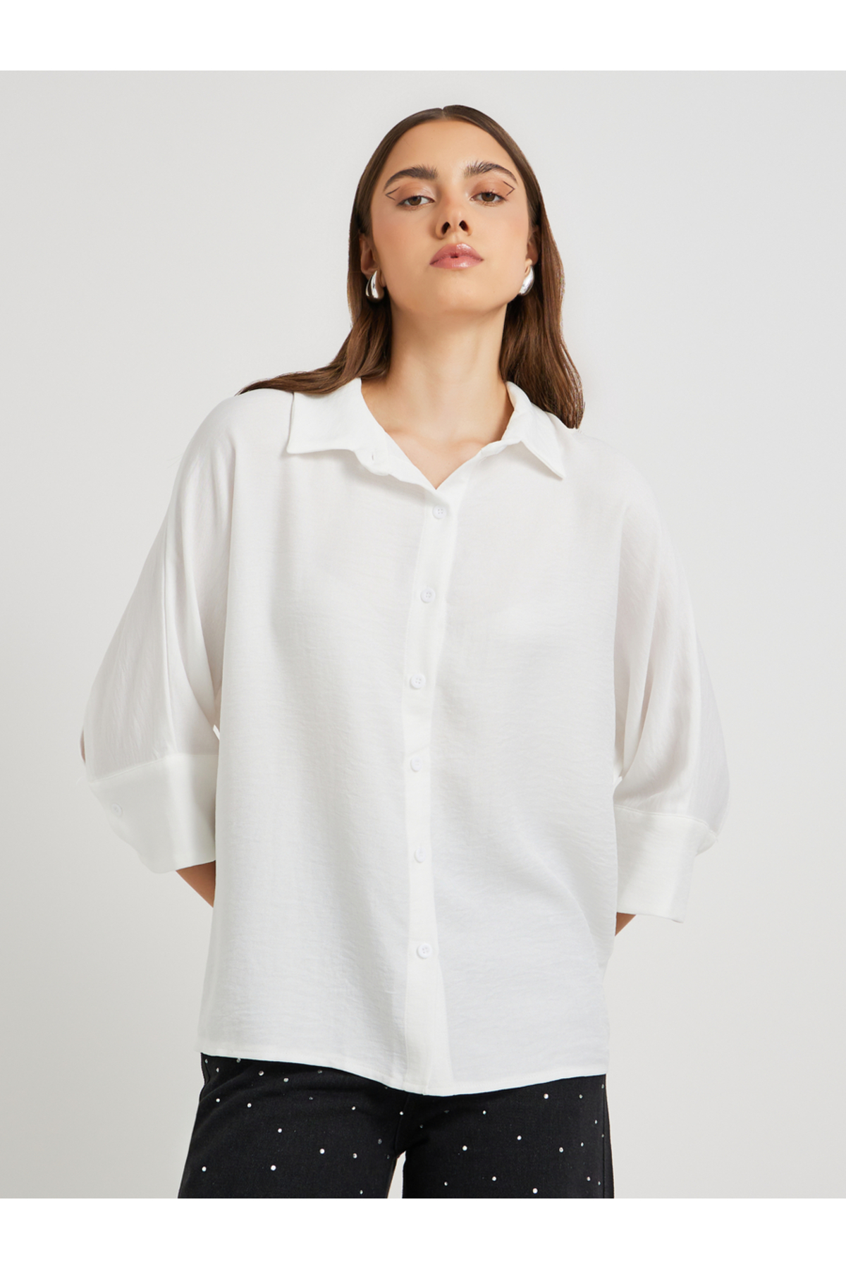 ميزات قميص كبير الحجم بياقة واسعة سادة من Styli