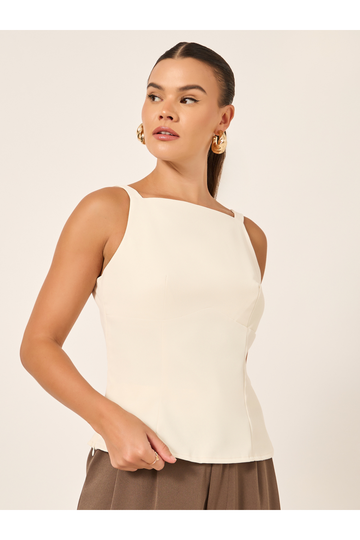 ميزات بلوزة سادة بدون أكمام برقبة مربعة من Styli