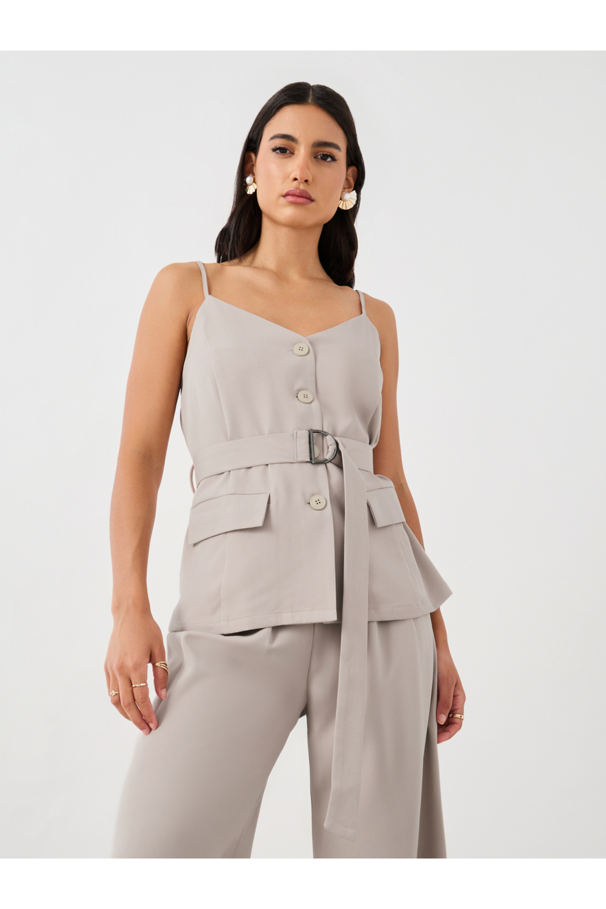 ميزات سترة صلبة بحزام من Styli